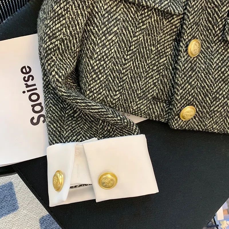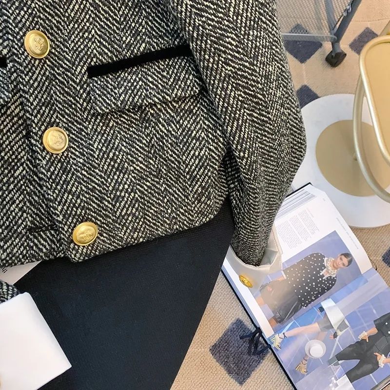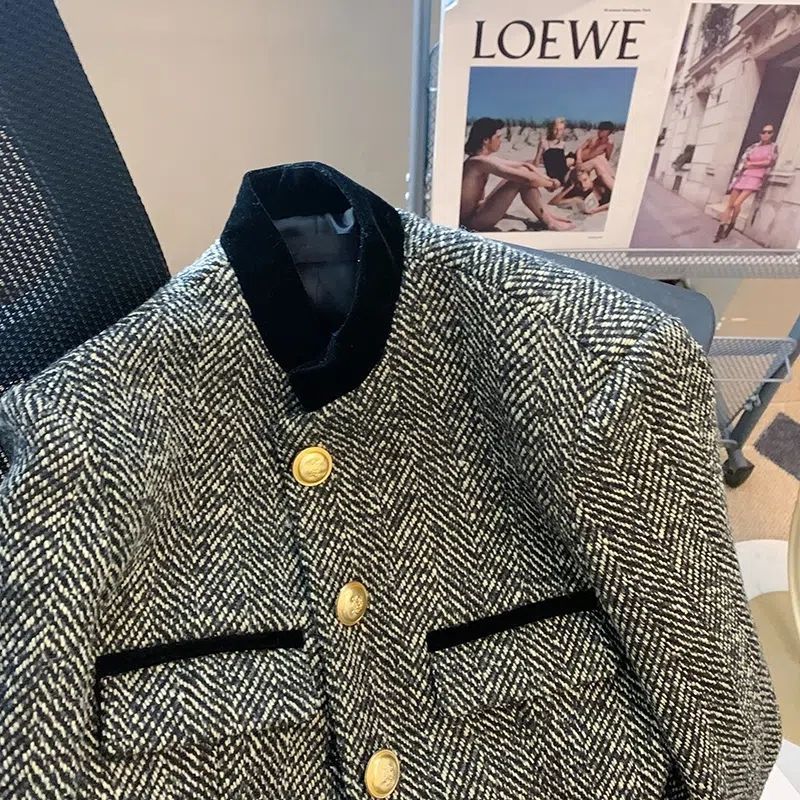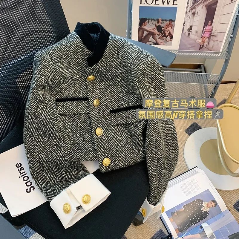| nameOriginal | Black and white contrast color stand collar French retro equestrian clothing women's clothing 2023 Spring and Autumn new short Chanel style suit jacket |