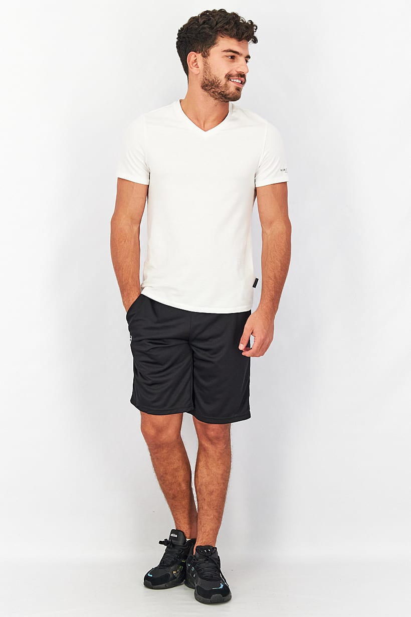 | sub_Categories | Men Clothing, Sportswear, men sportswear fit solid drawstring training shorts black white |
