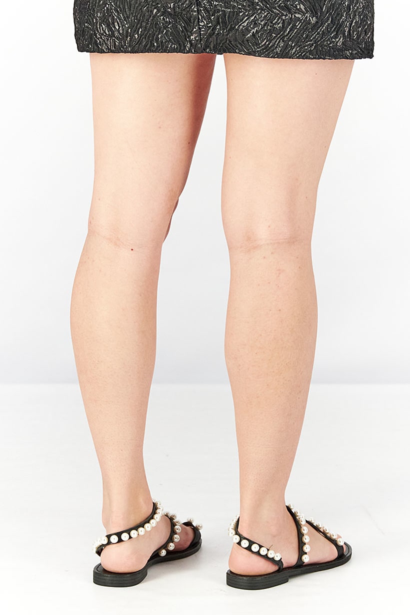 | nameOriginal | Women Slip On Embellished Open Toe Sandals, Black and White |