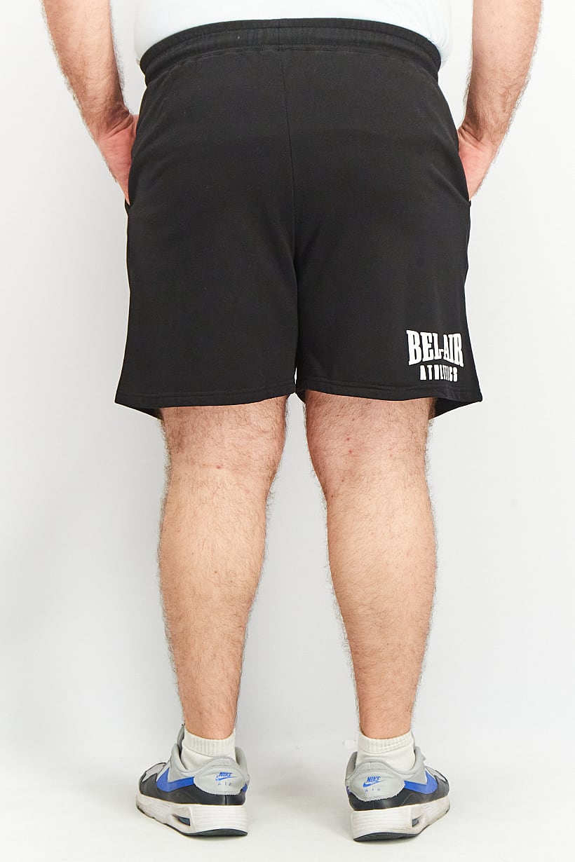 This product is machine washable and has a sportswear fit. The size shown is international and the thickness is light, making it suitable for training. The bottom closure is a drawstring for a secure fit. Please note that the product color may vary slightly due to photographic lighting sources or monitor settings. Made from 100% cotton, these shorts feature a brand logo print and are perfect for sports occasions. They belong to the black color family and fall under the category of sportswear shorts.