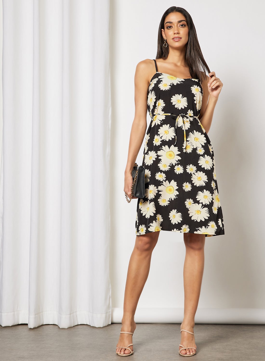 | nameOriginal | Women'S Casual Knee Length Straps Floral Dress Black/White |