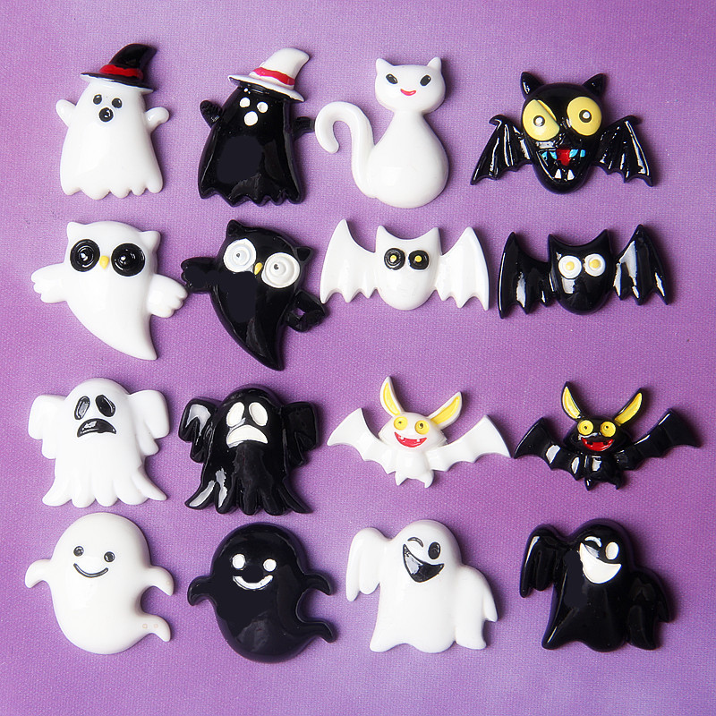 Black and white ghost Halloween resin accessories diy headband mobile phone shell accessories cross-border supply manufacturers direct supply