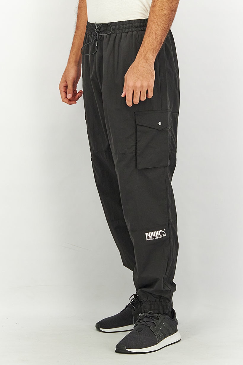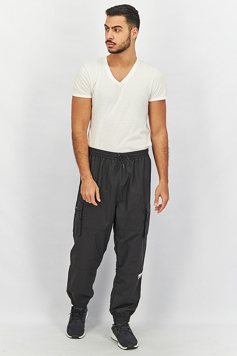 Bottom Hem : Straight, Care : Machine washable, Fit : Regular fit, Size shown : US, Thickness : Light, Type of Sport : Training, Disclaimer : Product color may slightly vary due to photographic lighting sources or your monitor settings., Fabrics : 100% Polyester, Occasion : Sport, Pattern & Print : Graphic print, Sportswear Type : Track Pants, Color Family : Black,