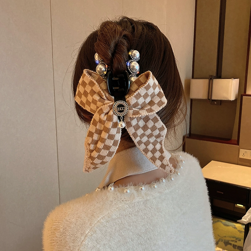 | nameOriginal | Black and white hairpin for women, summer fairy style, autumn and winter style, checkerboard pattern |