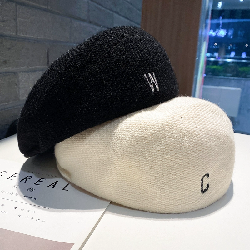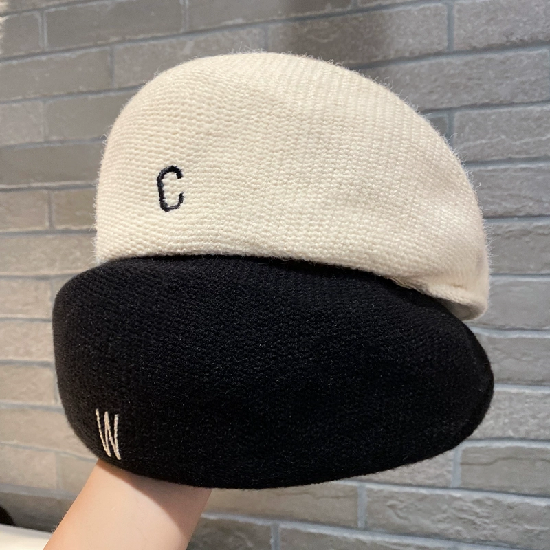 | nameOriginal | Black and white letters reverse beret for men and women spring and autumn style ins niche knitted forward hat sun visor peaked cap |