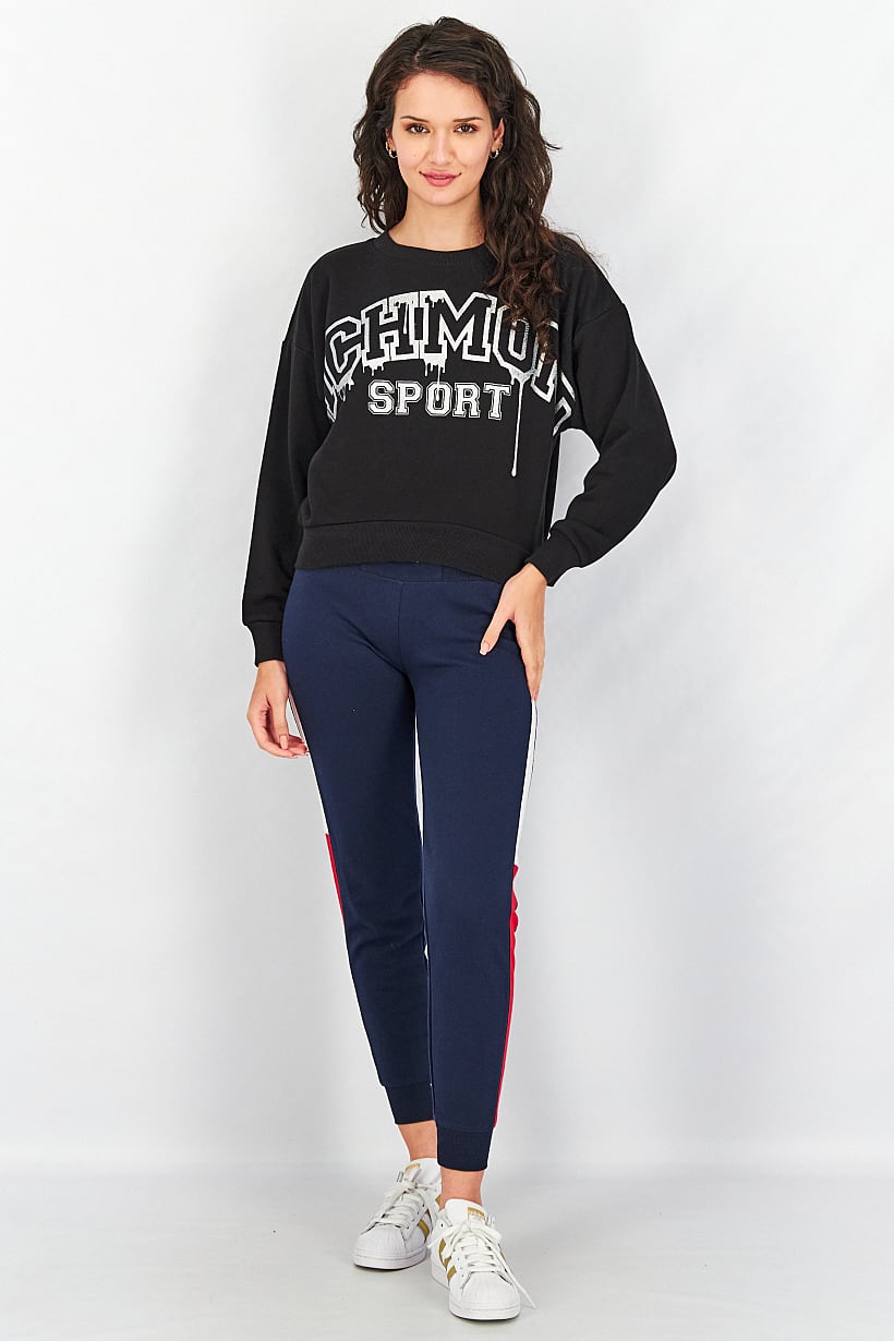 Women Sportswear Fit Long Sleeves Sweatshirt, Black/White