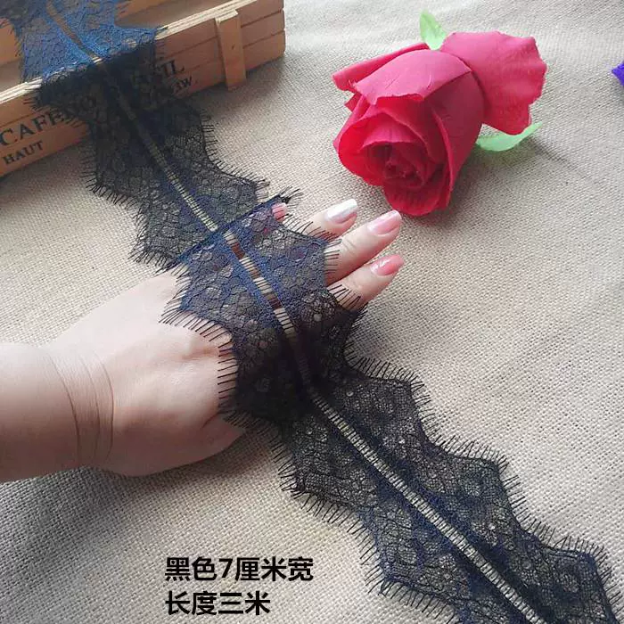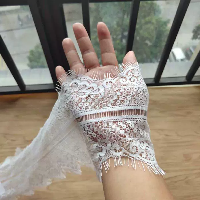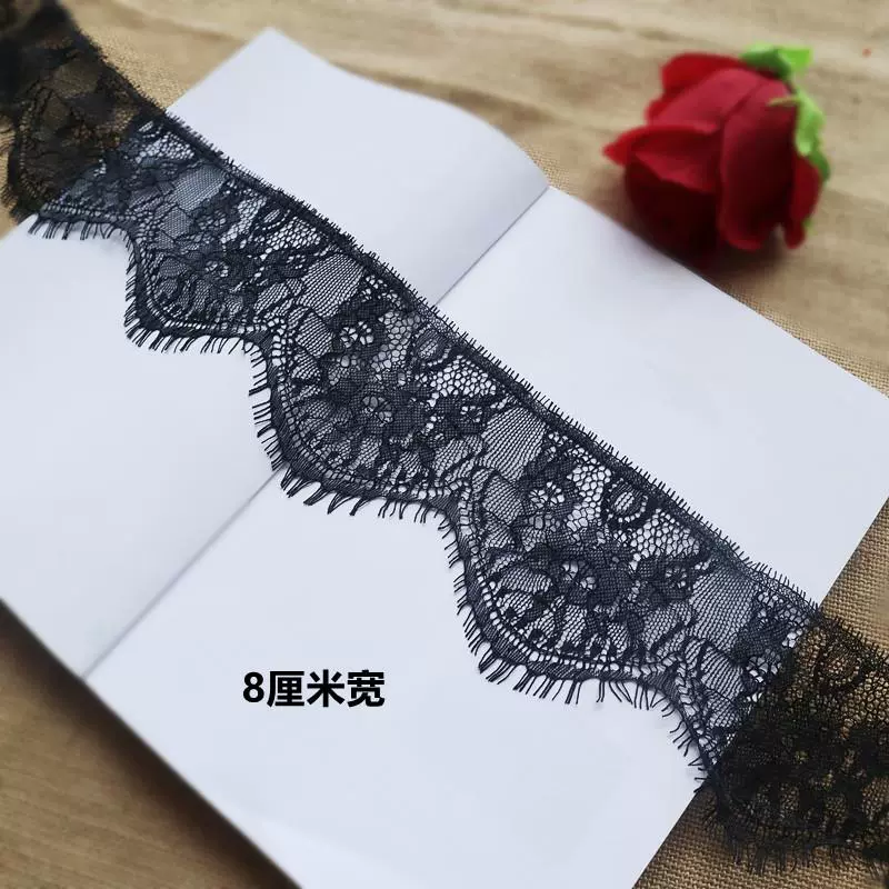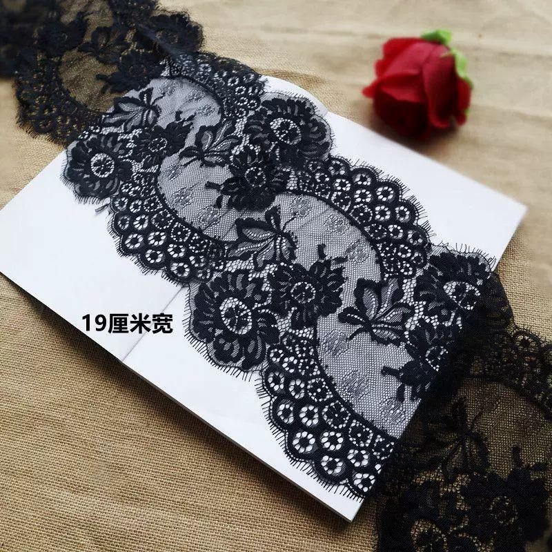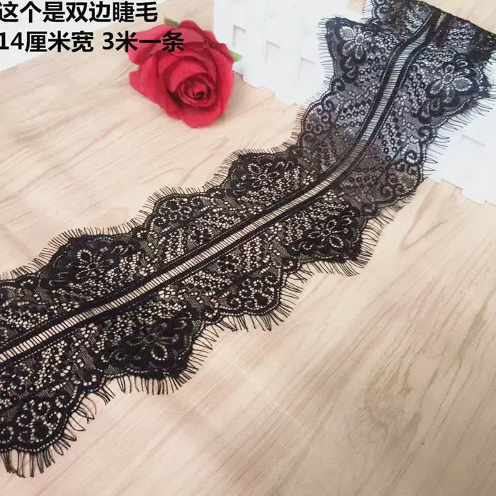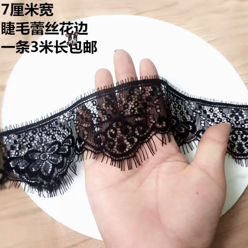 Black and white non-elastic eyelash lace accessories wide skirt tube top sleeves neckline and hem extension