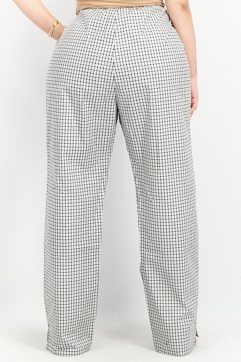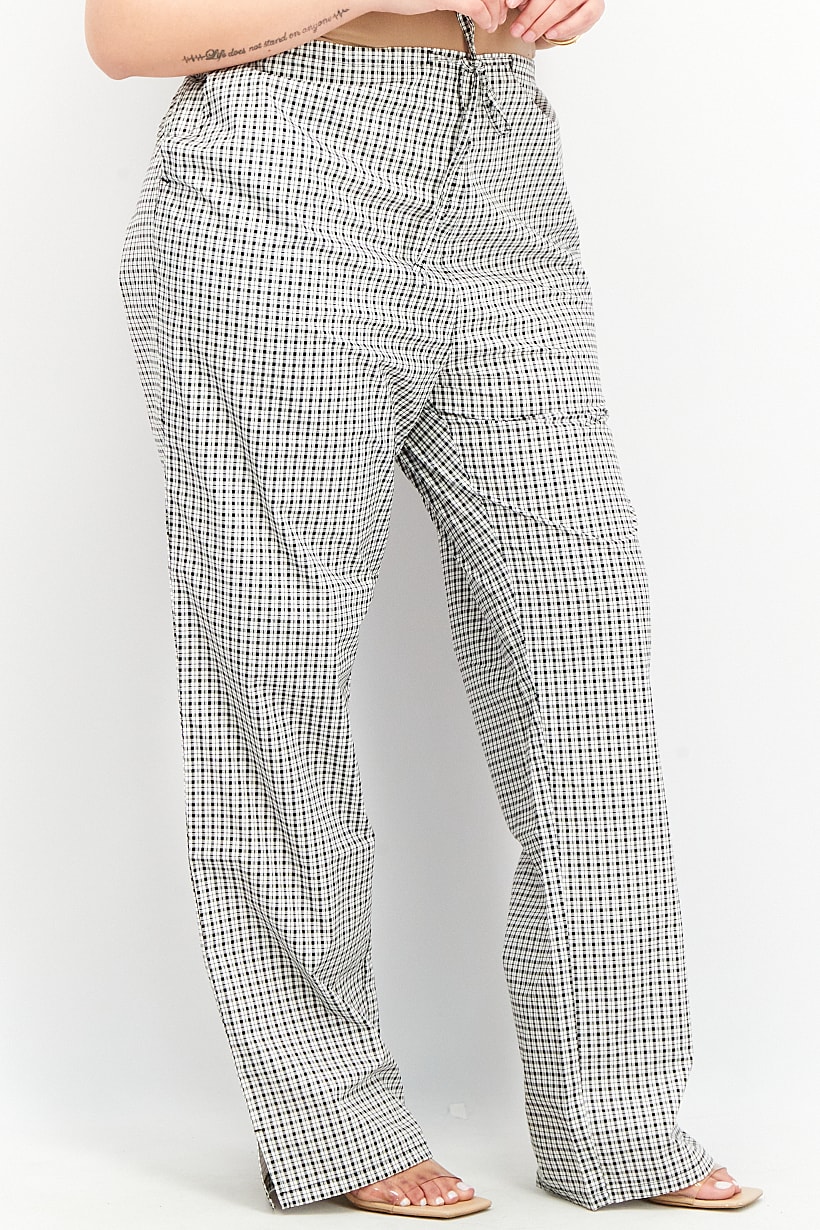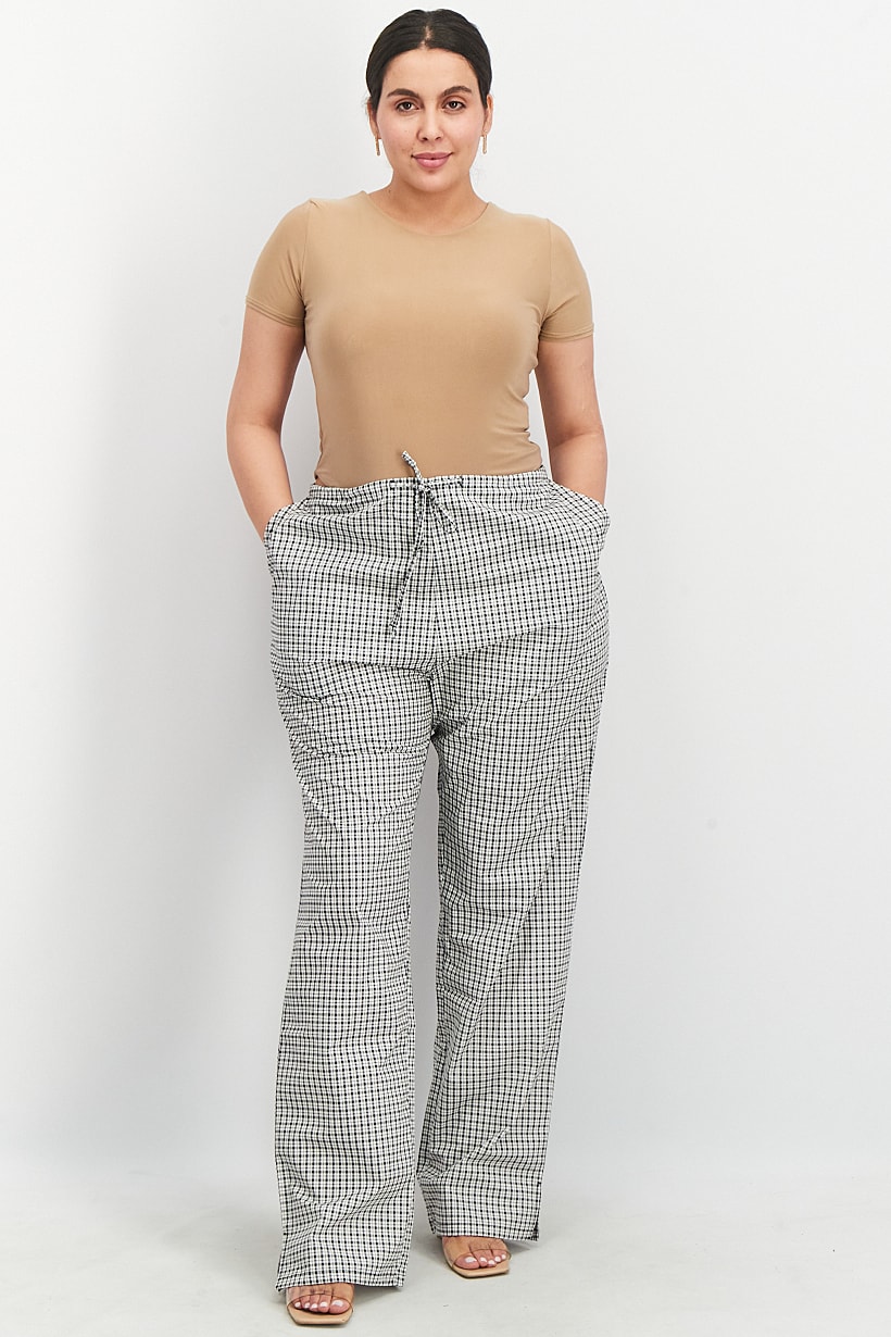 | nameOriginal | Women Drawstring Straight Leg Pull On Plaid Pants, Black/White |