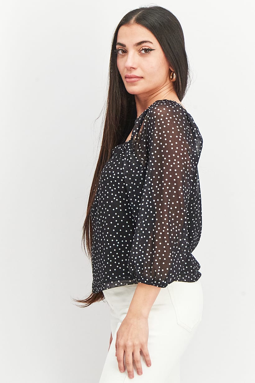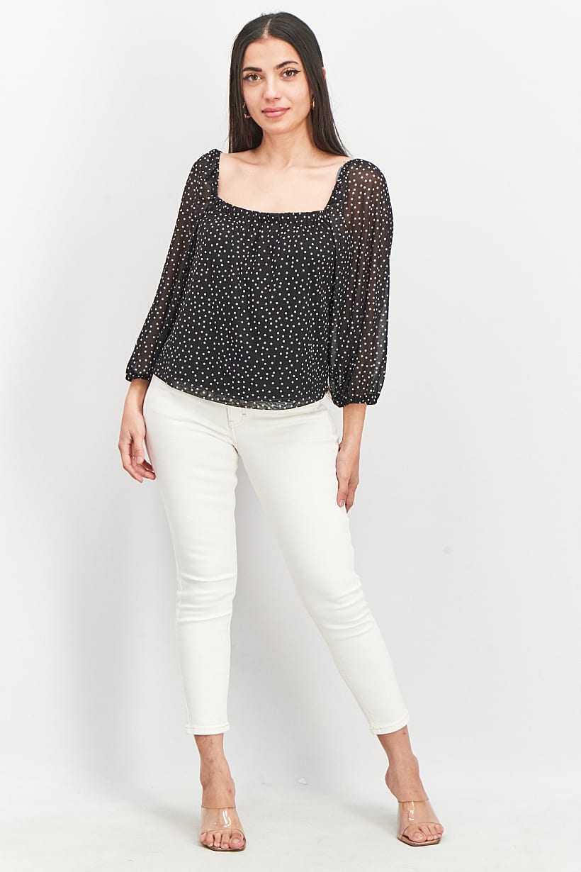 | nameOriginal | Women Square Neck Puffed Sleeve Polka Dots Tops, Black/White |