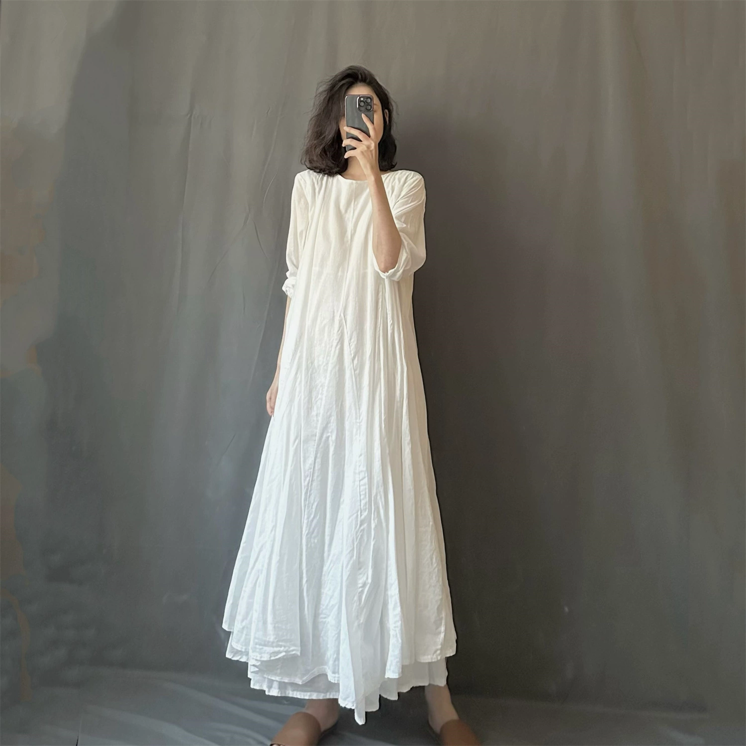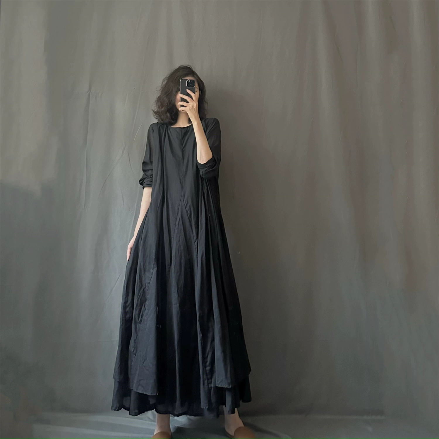 Black and white round neck long sleeve loose dress spring and summer pullover