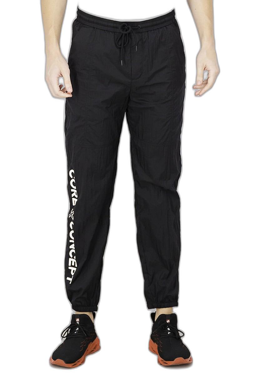 This product is easy to care for as it is machine washable. It has a sportswear fit and is available in international sizes. The fabric is lightweight and suitable for running. The bottom closure features a drawstring for a secure fit. Please note that the product color may appear slightly different due to lighting or monitor settings. The sweatpants are made of 100% Polyamide and feature a graphic print. They are part of the black color family and are categorized as sportswear.
