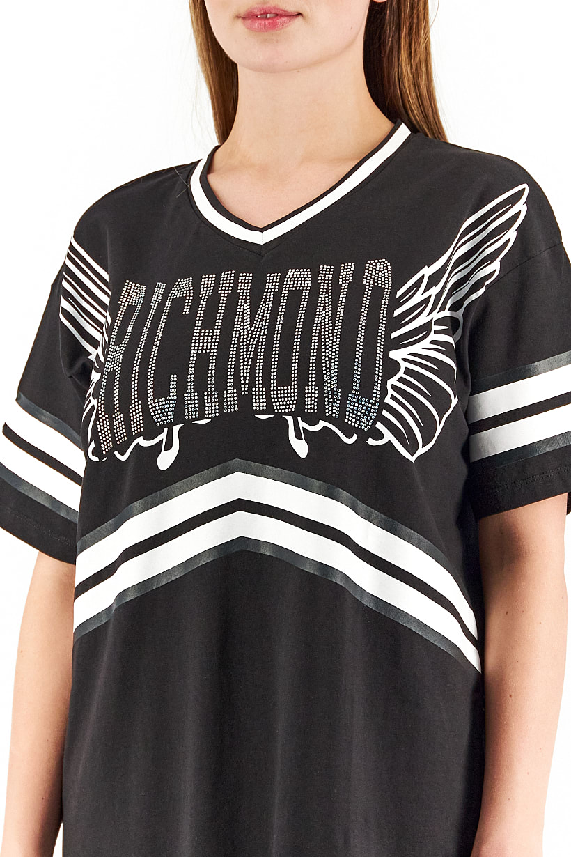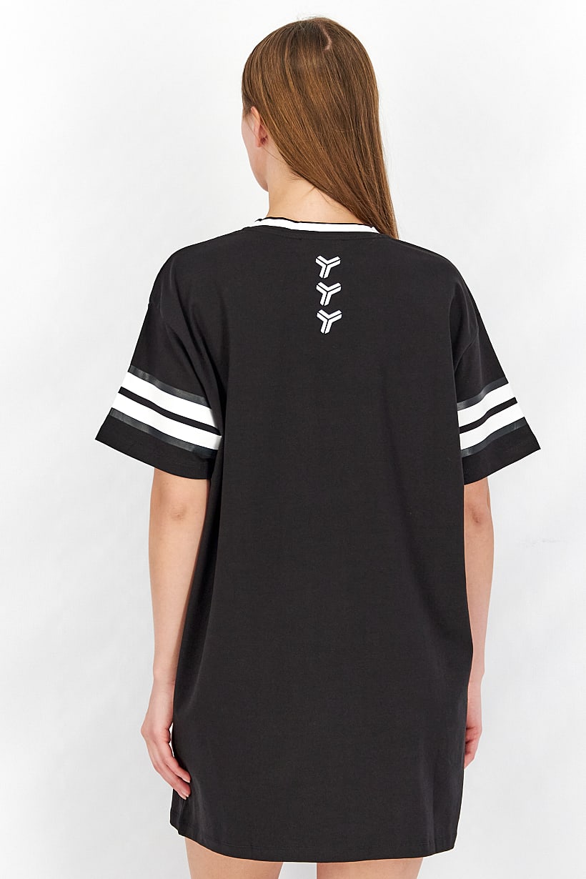 Care : Machine washable, Fit : Regular fit, Size shown : International, Types of Hem : Straight hem, Types of Neckline & Collar : Crew neckline, Types of Sleeve : Short sleeve, Fabrics : 100% Cotton, Pattern & Print : Textured pattern, Graphic print, Types of Closures : Pullover, Color Family : Black, Ideal For : Women, Type of Sport : Outdoors, Embellished : Beads, Occasion : Sport, Sportswear Type : Dress,