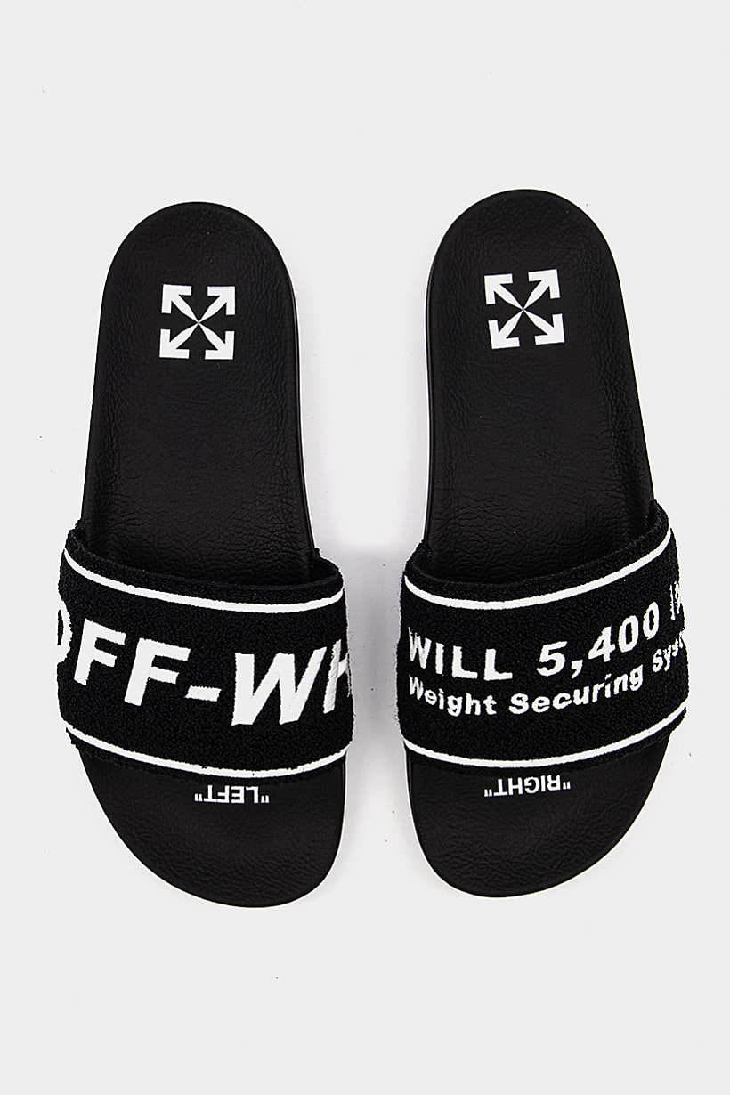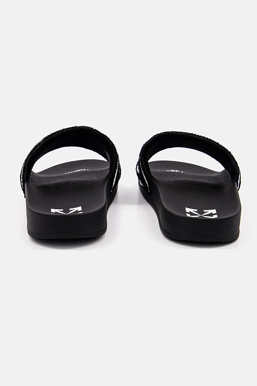 | sub_Categories | Shoes, Slides & Slippers, men embroidered slip on slides black white |