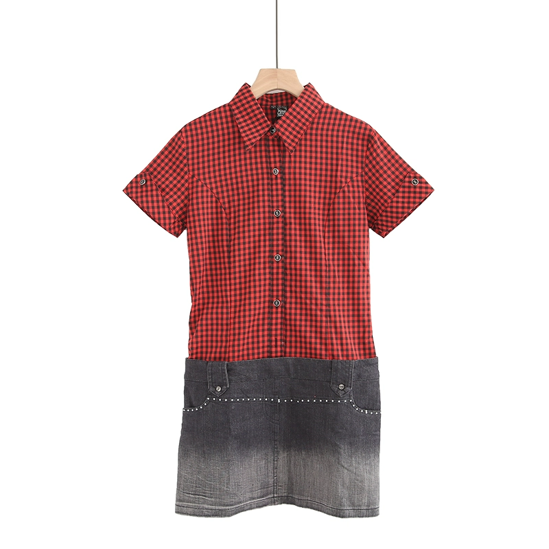 Black and white spliced ​​denim skirt retro cotton plaid shirt