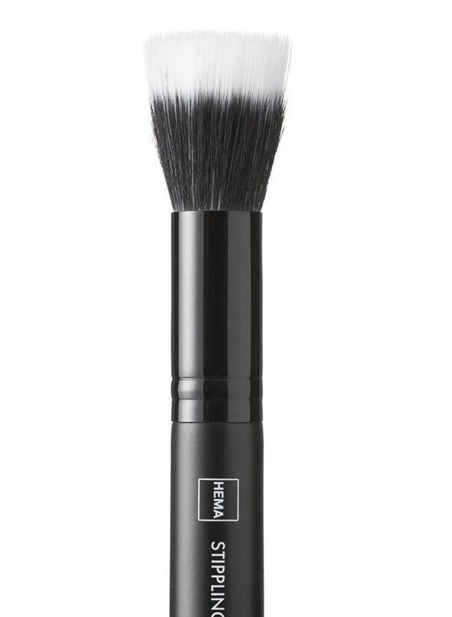 The Stippling Brush Black/White is a versatile makeup brush that is perfect for achieving a flawless, airbrushed finish. The brush features a unique design with black and white bristles that work together to blend and buff your makeup seamlessly. The white bristles are soft and flexible, while the black bristles are firmer and more densely packed, allowing you to apply and blend both liquid and powder products with ease. The brush head is tapered to a point, making it ideal for applying foundation, blush, bronzer, and highlighter to specific areas of the face. The Stippling Brush Black/White is a must-have tool for any makeup enthusiast looking to achieve a professional-looking finish.