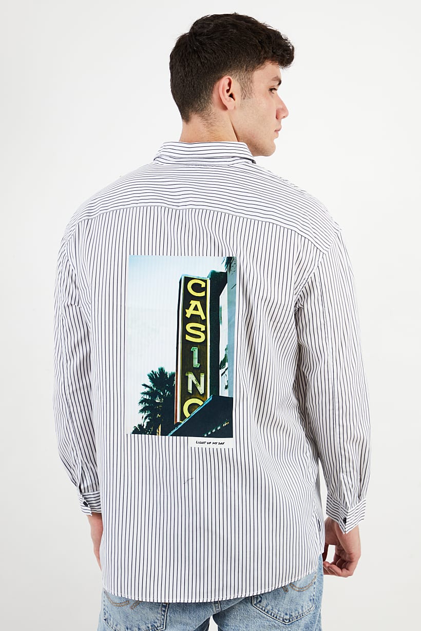 | nameOriginal | Men Regular Fit Long Sleeves Stripe Casual Shirt, Black/White |