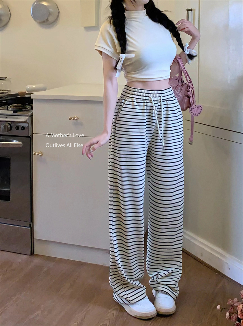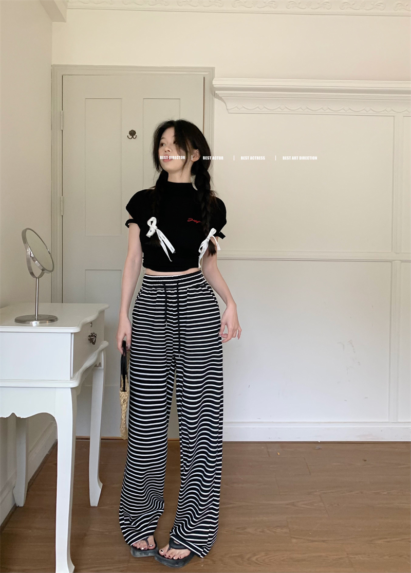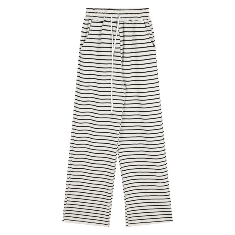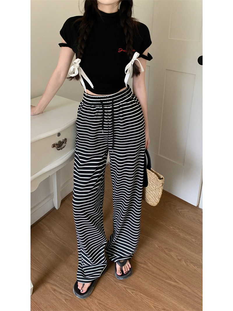 | nameOriginal | Black and White Striped Drawstring Dagging Casual Pants Women's Summer Straight Pants Loose High Waist Wide Leg Walking Pants |