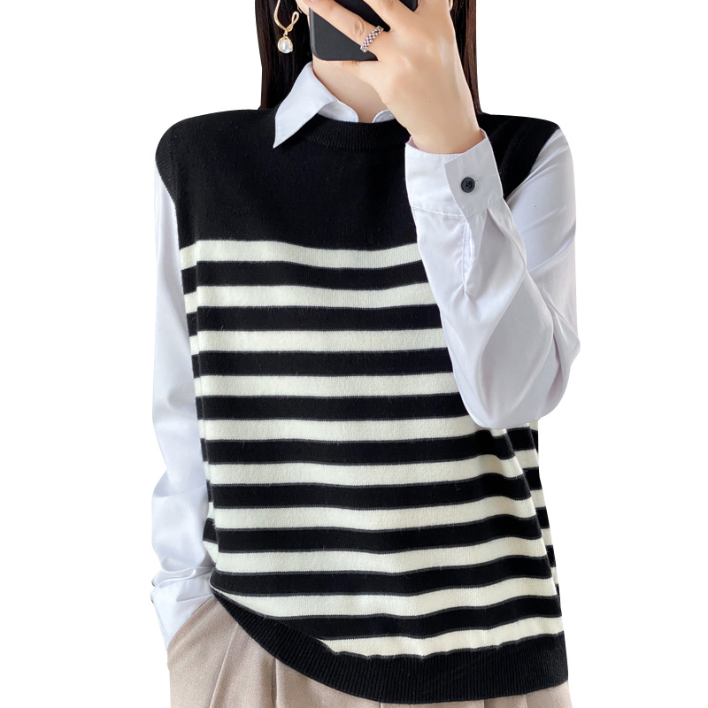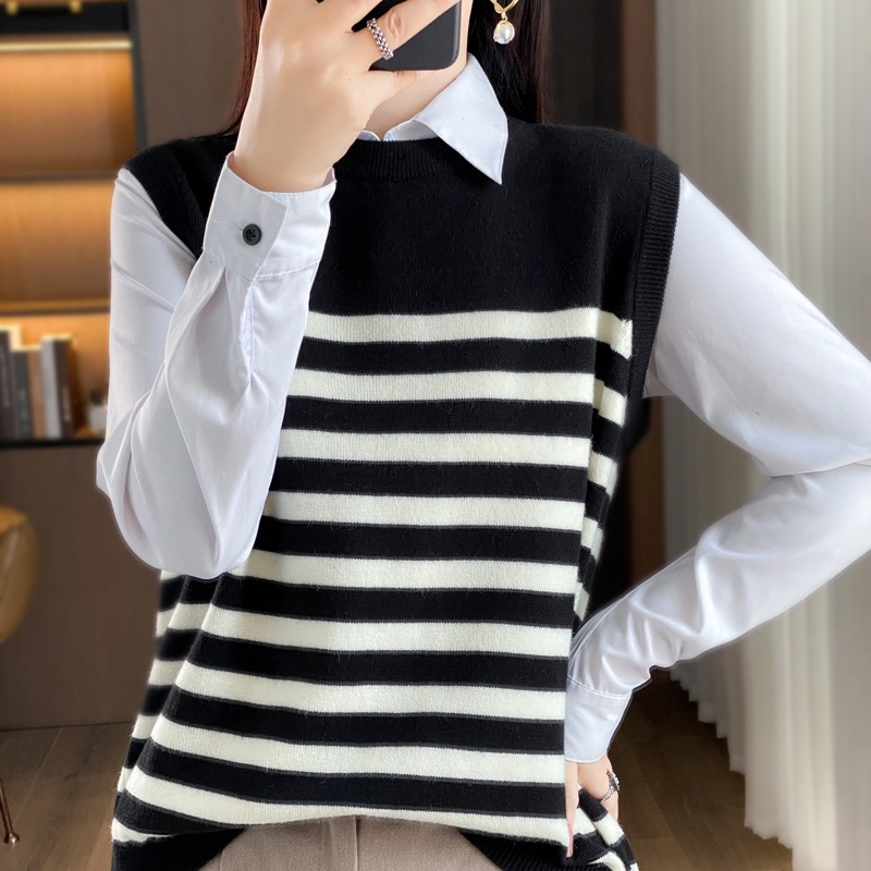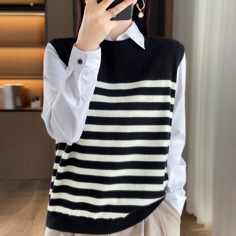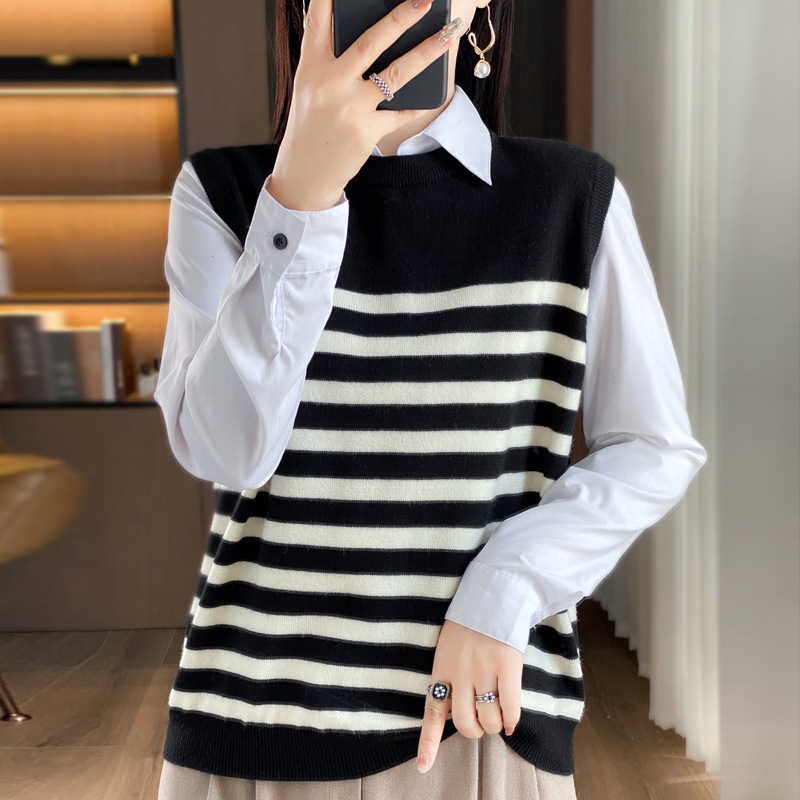 | nameOriginal | Black and white striped knitted waistcoat all-matching women's autumn and winter 2023 new thin cashmere outer sweater small waistcoat |