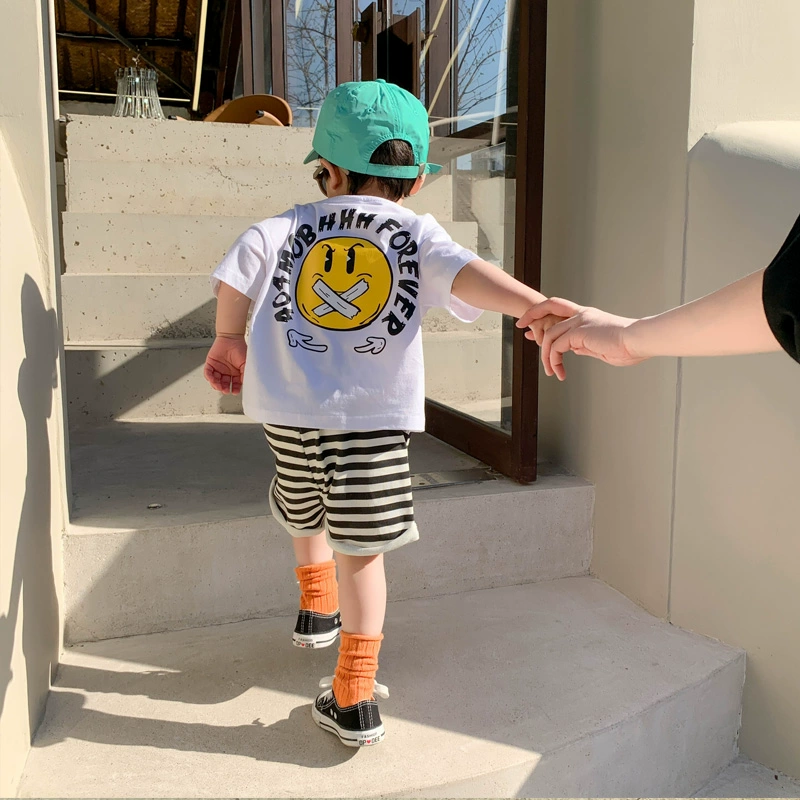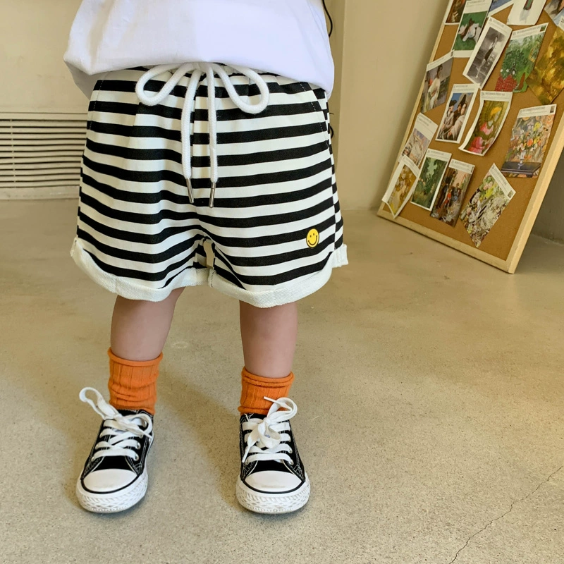 Black and white striped lace-up shorts for boys and girls, summer clothes