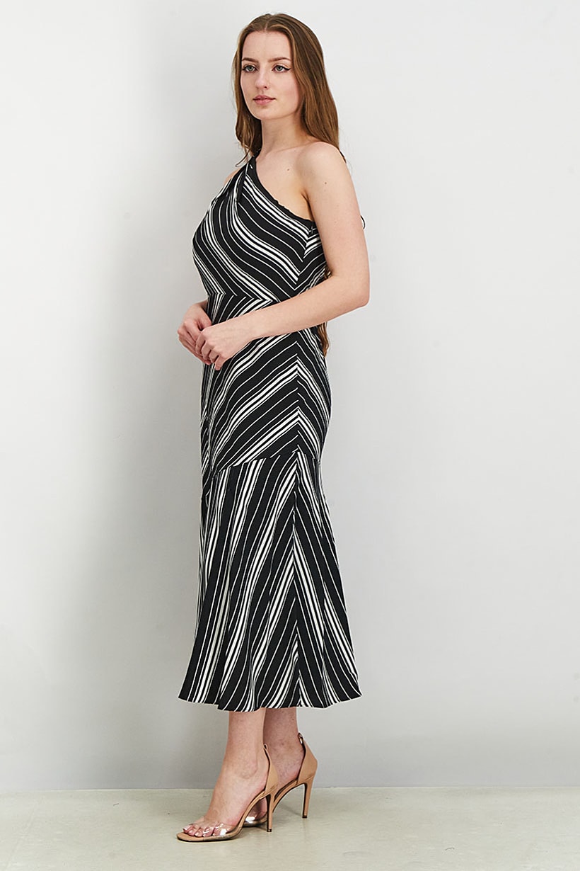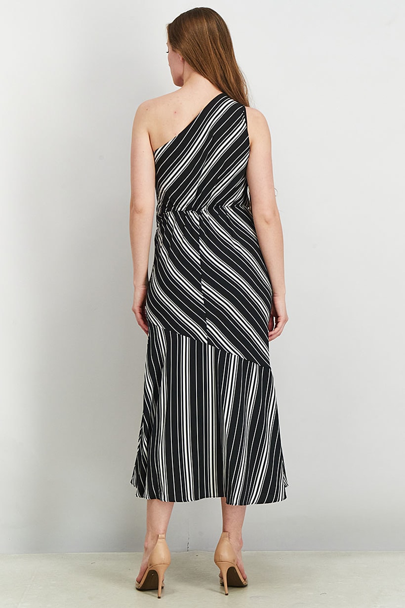 | sub_Categories | Women Clothing, Dresses, women one shoulder stripe maxi dress black white |