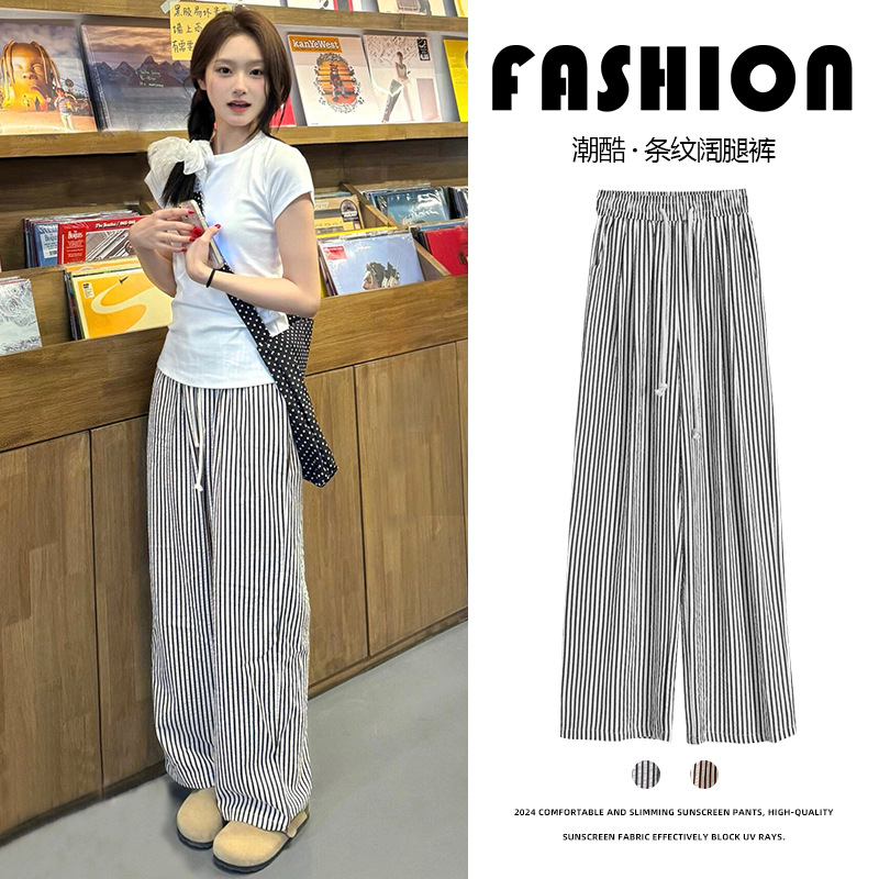 | nameOriginal | Black and White Striped Wide Leg Pants Women's Summer Thin 2024 New High Waist Casual Ice Silk Yamamoto Pants Loose Bf Lazy Style |