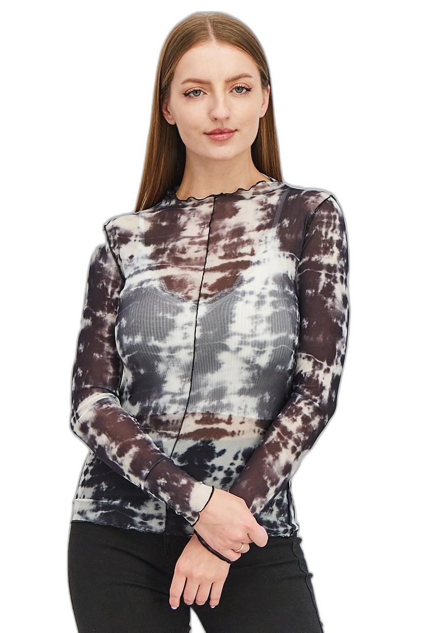 This blouse has a regular fit and a mock neckline with long sleeves. It features a textured pattern with tie dye and a straight hem. The fabric is made of 95% polyester and 5% spandex, and it is recommended to hand wash. Please note that the product color may vary slightly due to lighting or monitor settings. This blouse is perfect for casual occasions and can be easily pulled over with no closures. Please note that the inner garment is not included. The size shown is international.