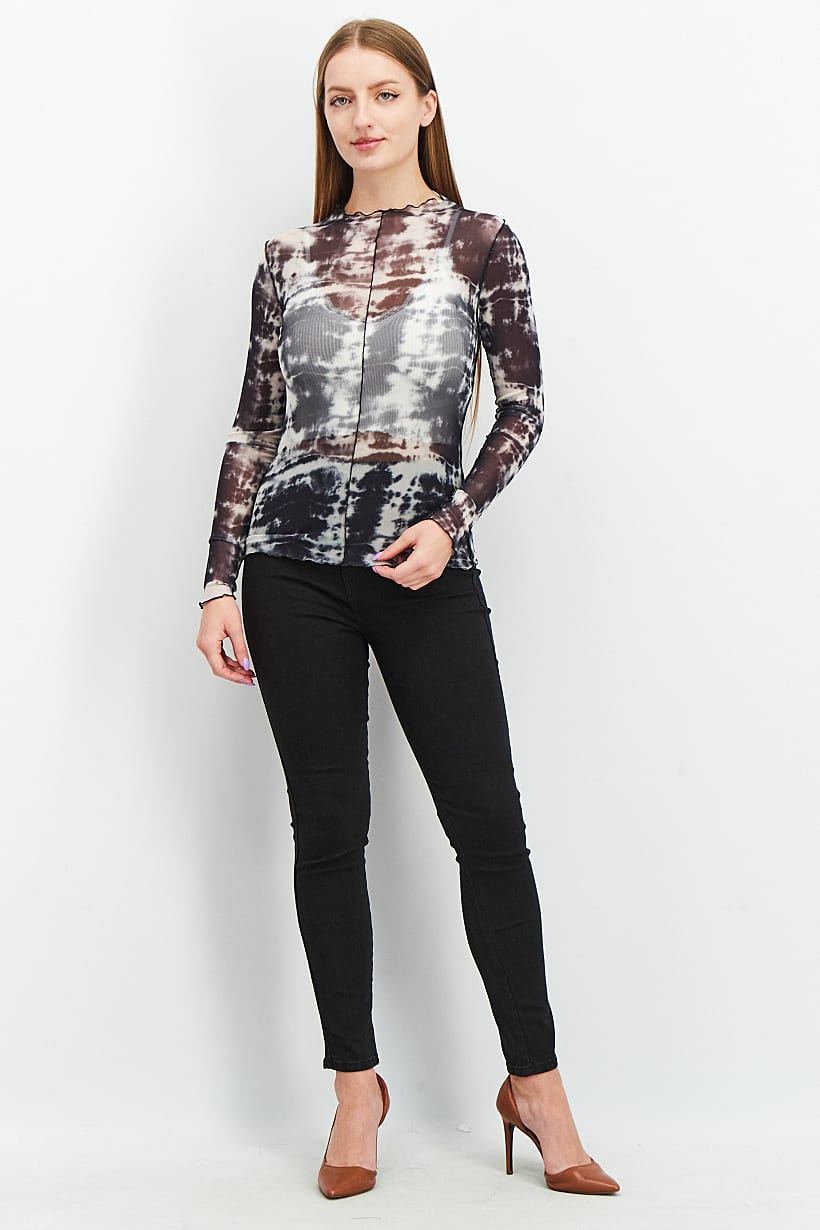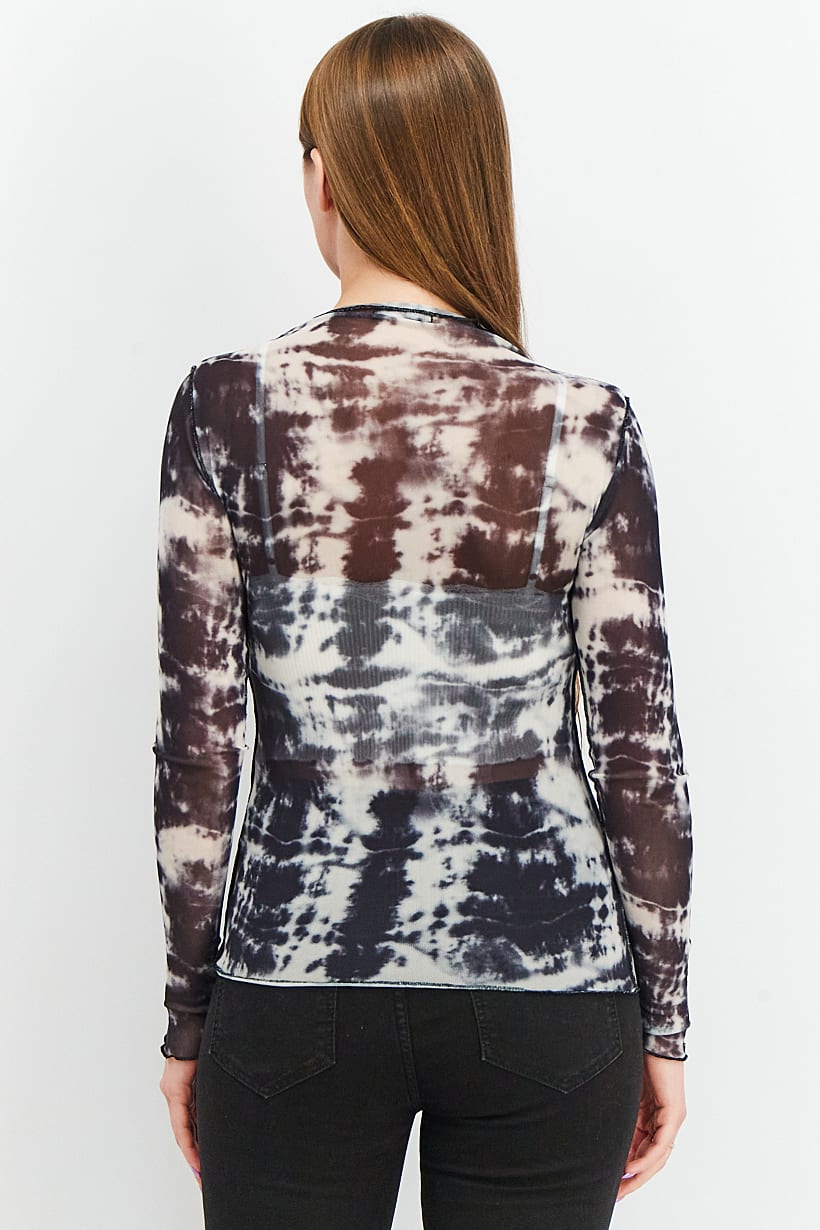 | descriptionOriginal | Care : Hand wash, Fit : Regular fit, Size shown : International, Top Style : Blouse, Types of Hem : Straight hem, Types of Neckline & Collar : Mock neckline, Types of Sleeve : Longsleeve, Disclaimer : Product color may slightly vary due to photographic lighting sources or your monitor settings., Fabrics : 95% Polyester, 5% Spandex, Occasion : Casual, Pattern & Print : Textured pattern, Tie dye, Types of Closures : Pullover, Color Family : Black, Disclaimer : Inner garment is not included., |