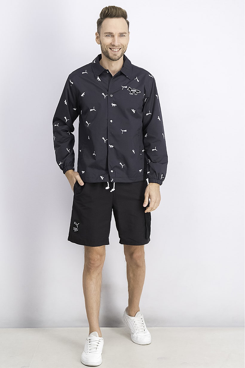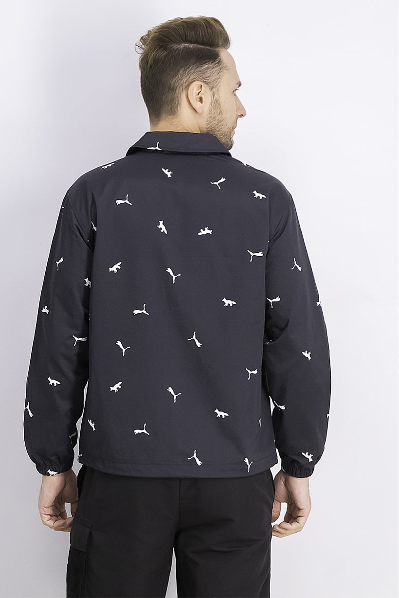 This product is easy to care for as it is machine washable. It has a regular fit and is available in international sizes. The jacket is lightweight and suitable for training. It is made of 100% polyester fabric and features an allover print. This jacket is perfect for sports and comes in a black color.