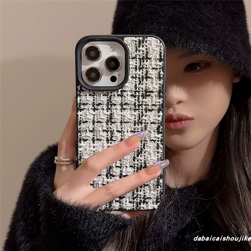 Black and white velvet grid suitable for Apple 16 mobile phone case iphone14promax new 13 women 15 full -inclusive anti -fall 12Pro men 13pro autumn and winter plush 11 small incense wind 15 protection set simple