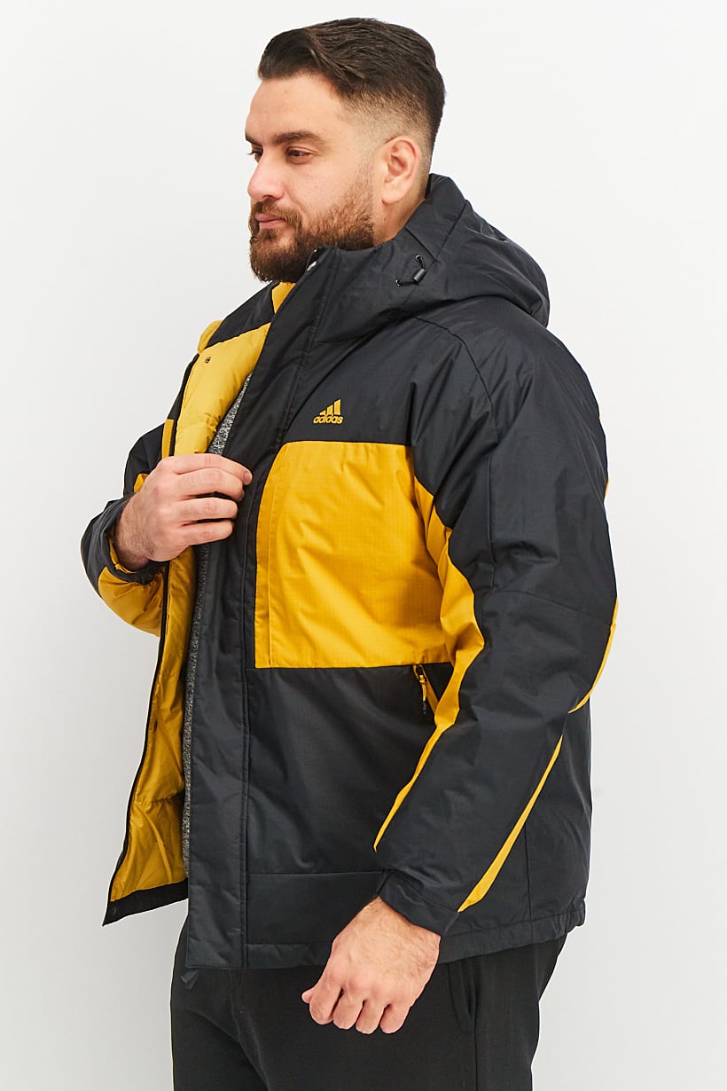 | nameOriginal | Men Regular Fit Long Sleeve Hooded Training Jacket, Black and Yellow |