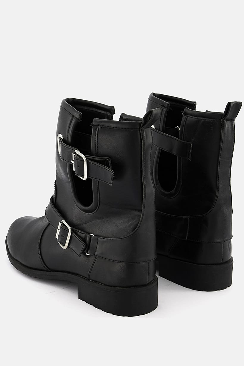 | sub_Categories | Shoes, Boots, women buckled open ankle boots black |