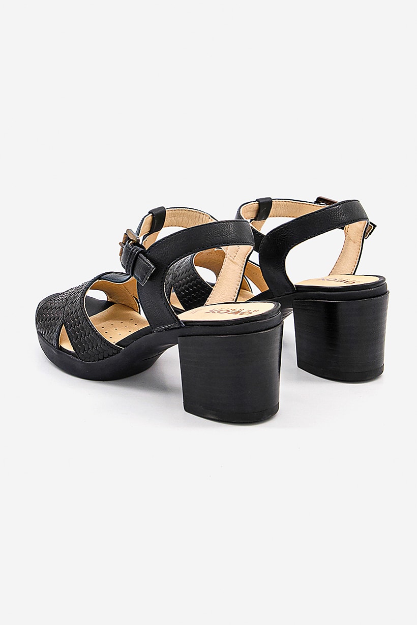 | descriptionOriginal | Heel Style : Block heel, Ideal For : Women, Shoe Closure : Slingback, Sole Material : Rubber sole, Toe Style : Peep toe, Disclaimer : Product color may slightly vary due to photographic lighting sources or your monitor settings., Occasion : Casual, Shoe Material : Synthetic Leather, Color Family : Black, |
