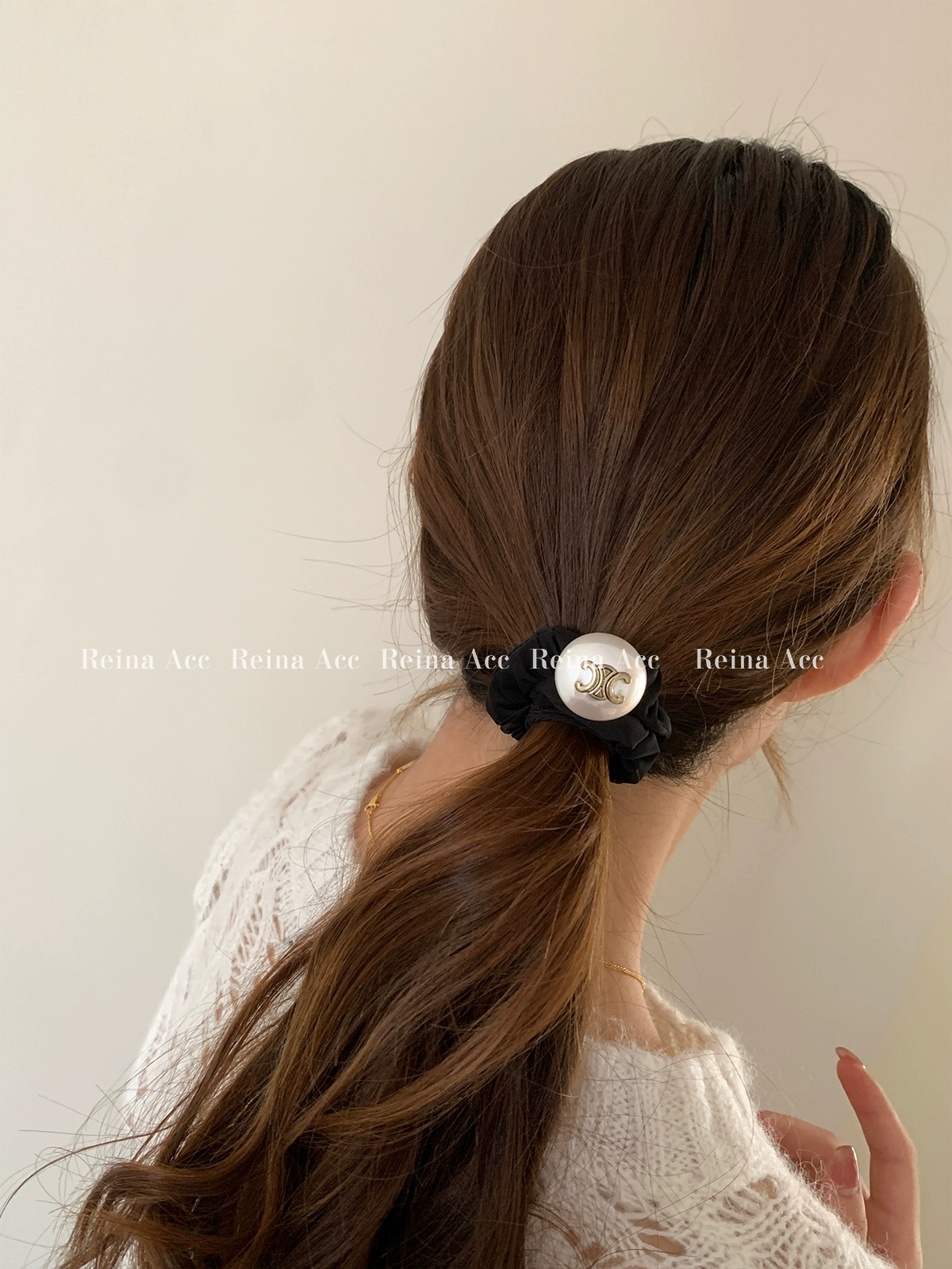 Black Arc de Triomphe Exquisite Rubber Band Pearl Intestinal Hair Tie