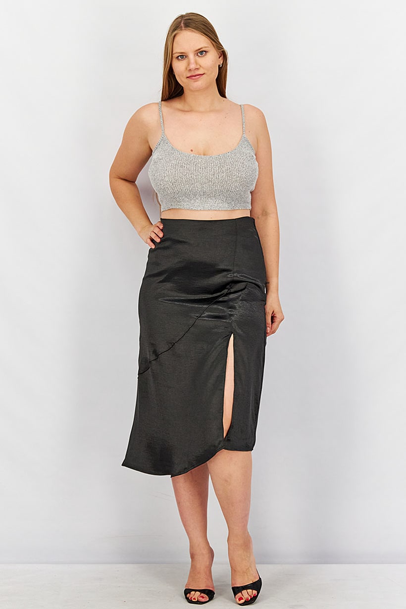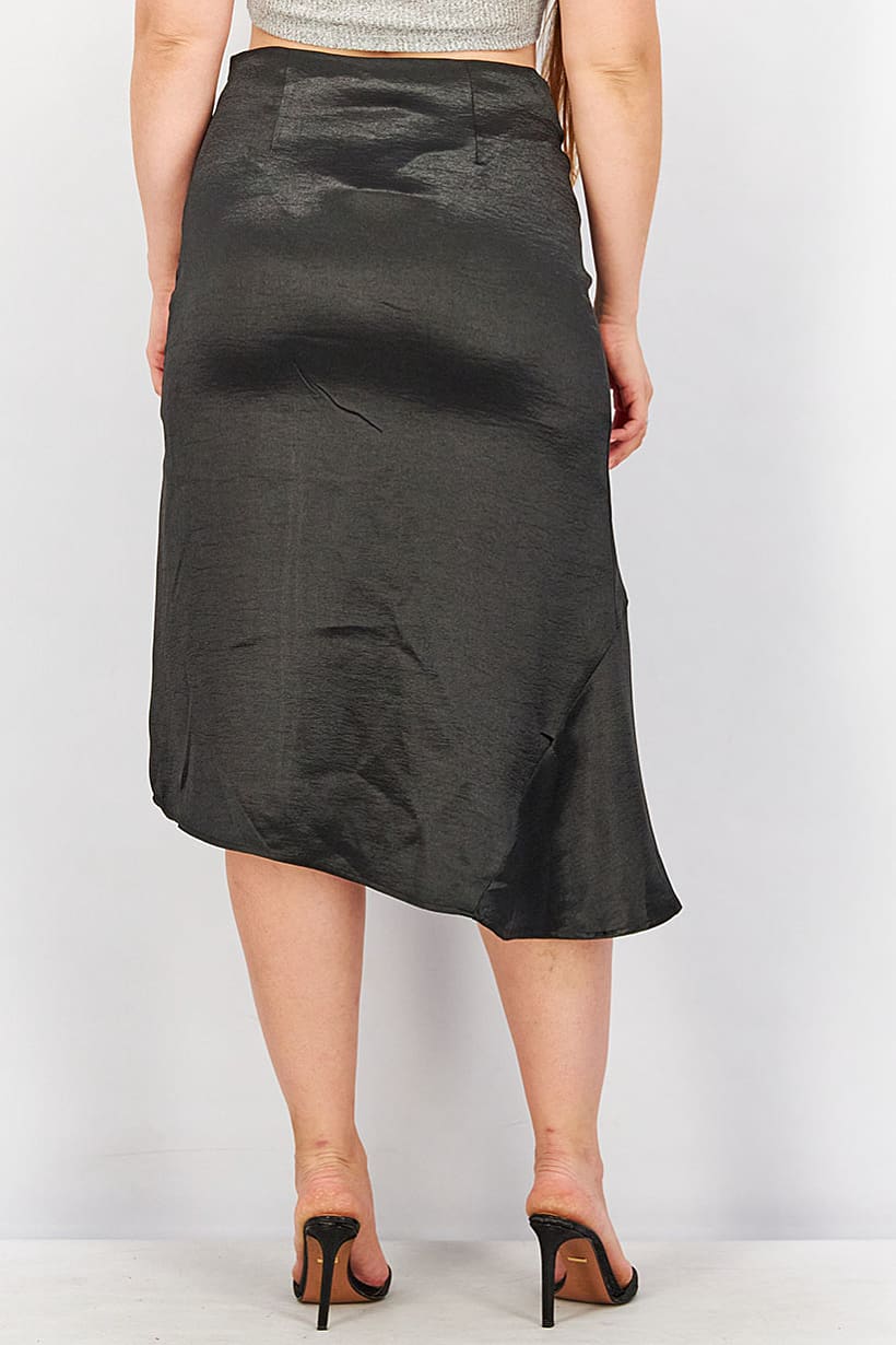 | nameOriginal | Women Front Slit Plain Asymmetrical Skirt, Black |