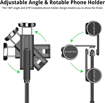 Black ATUMTEK Selfie Stick Tripod with Wireless Remote and 270 Rotation for iPhone, Samsung and Smartphones.