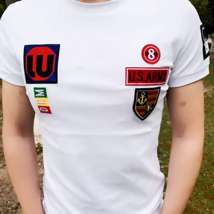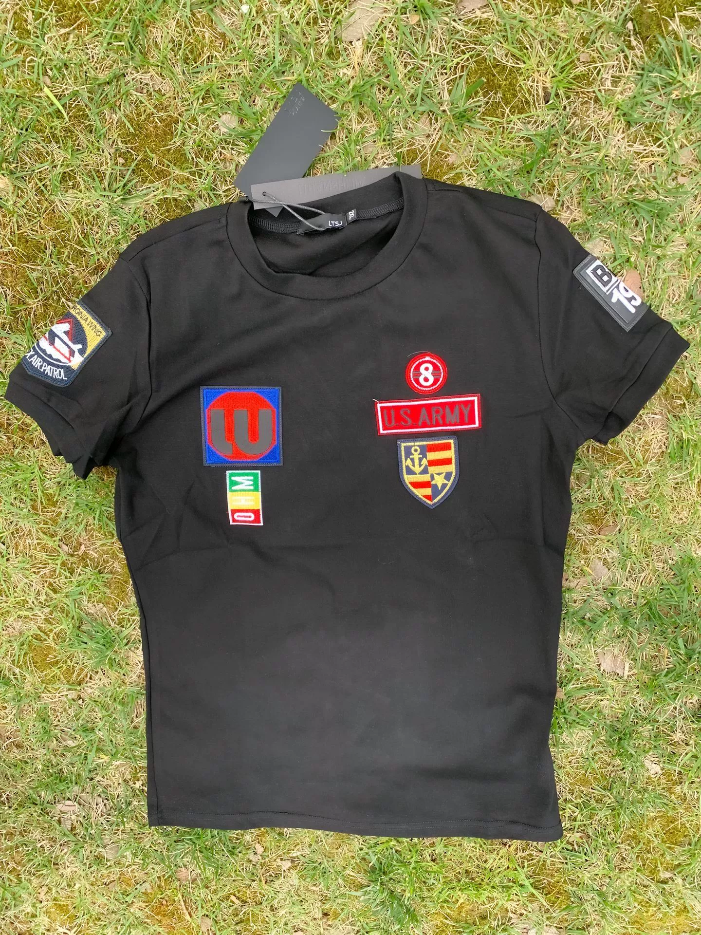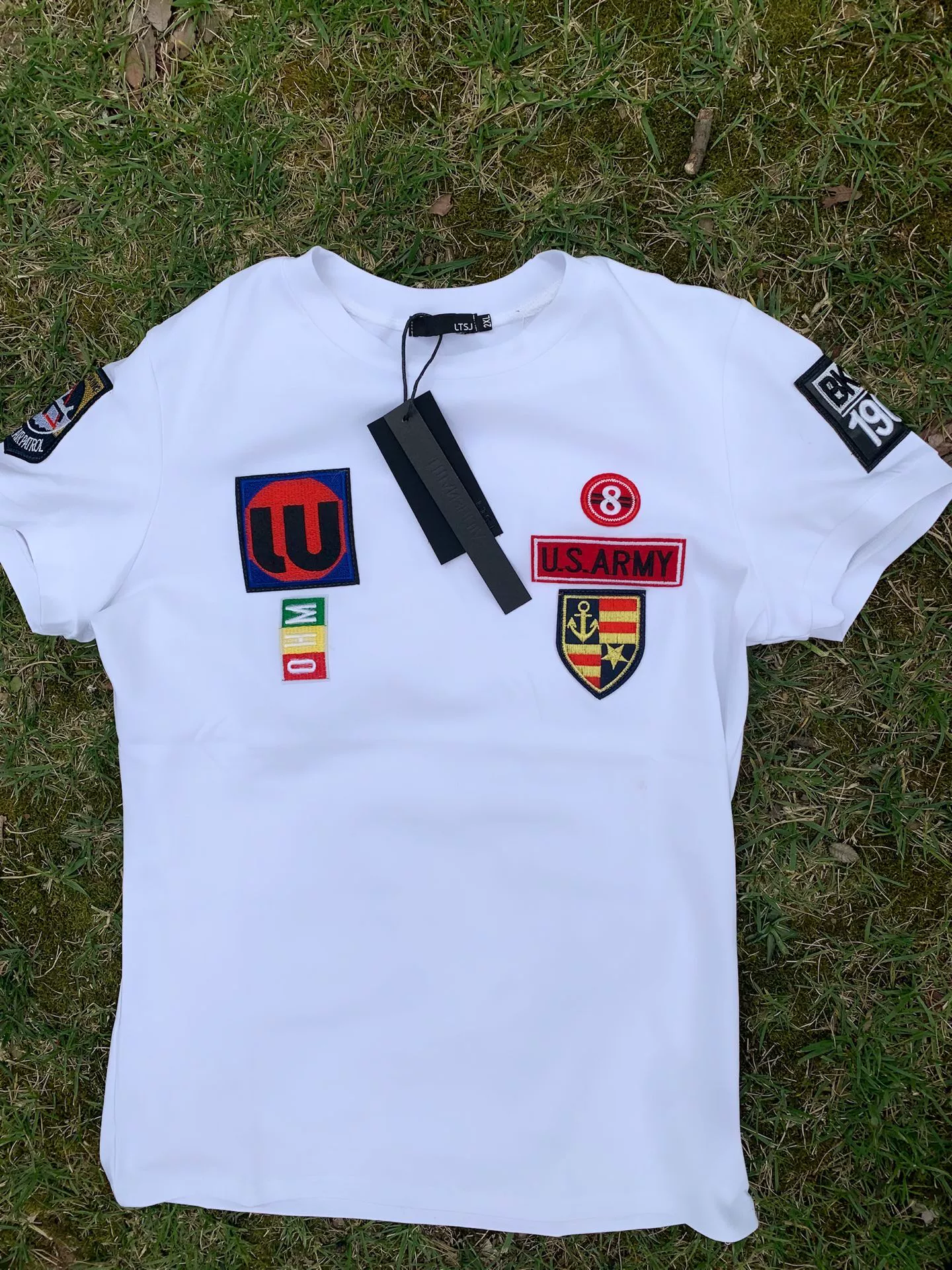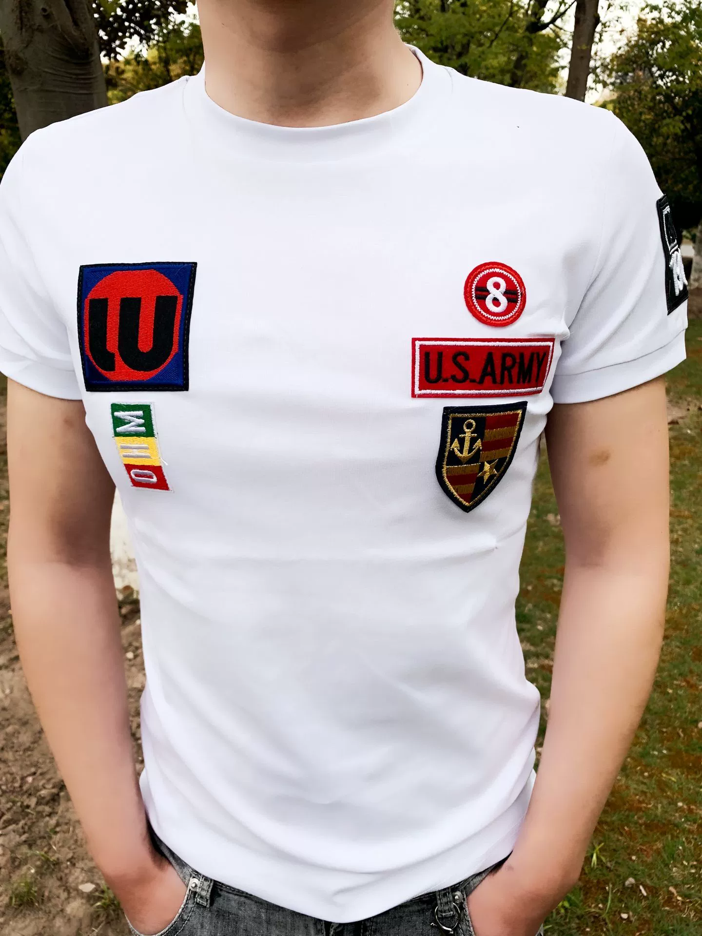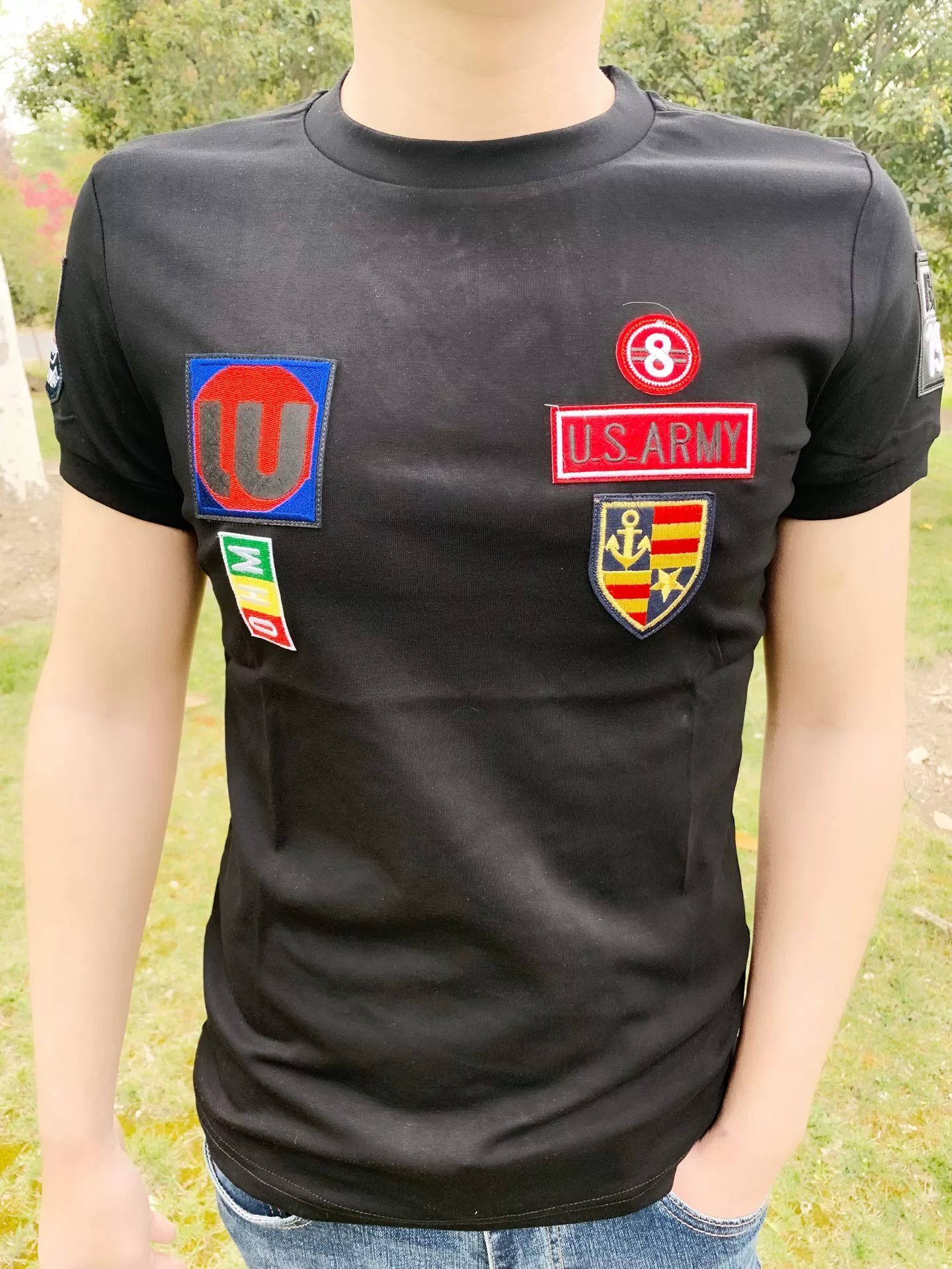 | nameOriginal | Black badge embroidered patch ins personalized slim round neck short-sleeved T-shirt men's versatile trendy men's T-shirt 197012 |
