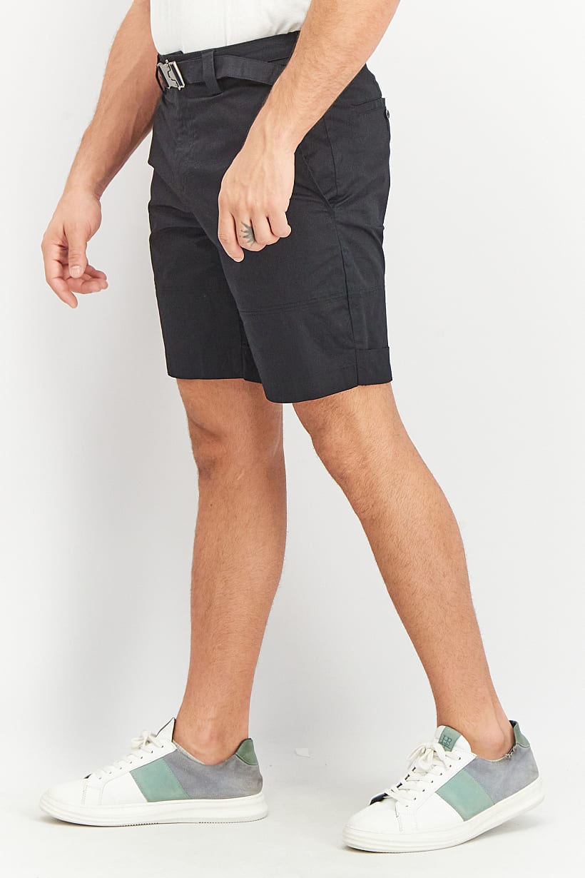 | nameOriginal | Men Belted Solid Basic Shorts, Black |