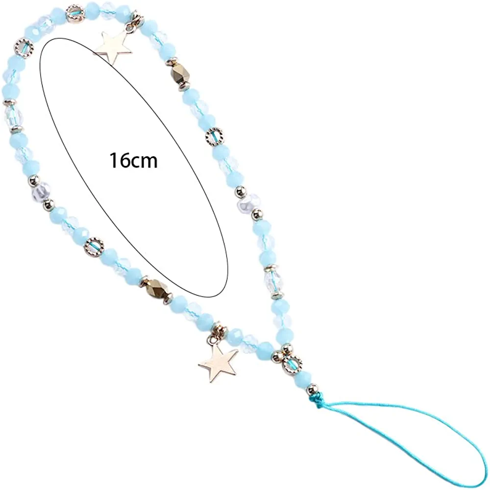 Beaded Phone Charm, Creative Five-Pointed Star Beaded Mobile Phone Chain Fashion Cellphone Case Hanging Rope for Women Girl(Black)