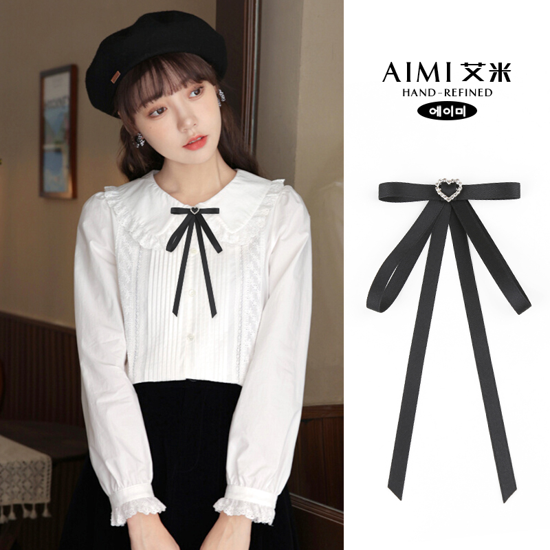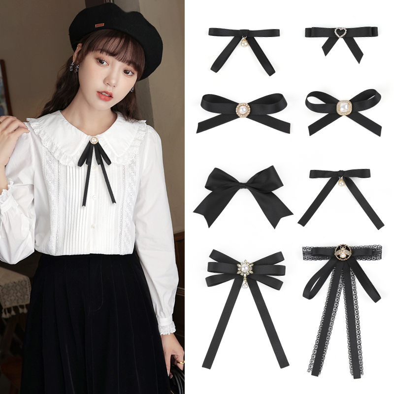 | nameOriginal | Black bow tie women's thin ribbon small bow pin buckle collar pin wool clothes accessories personalized decorative accessories |
