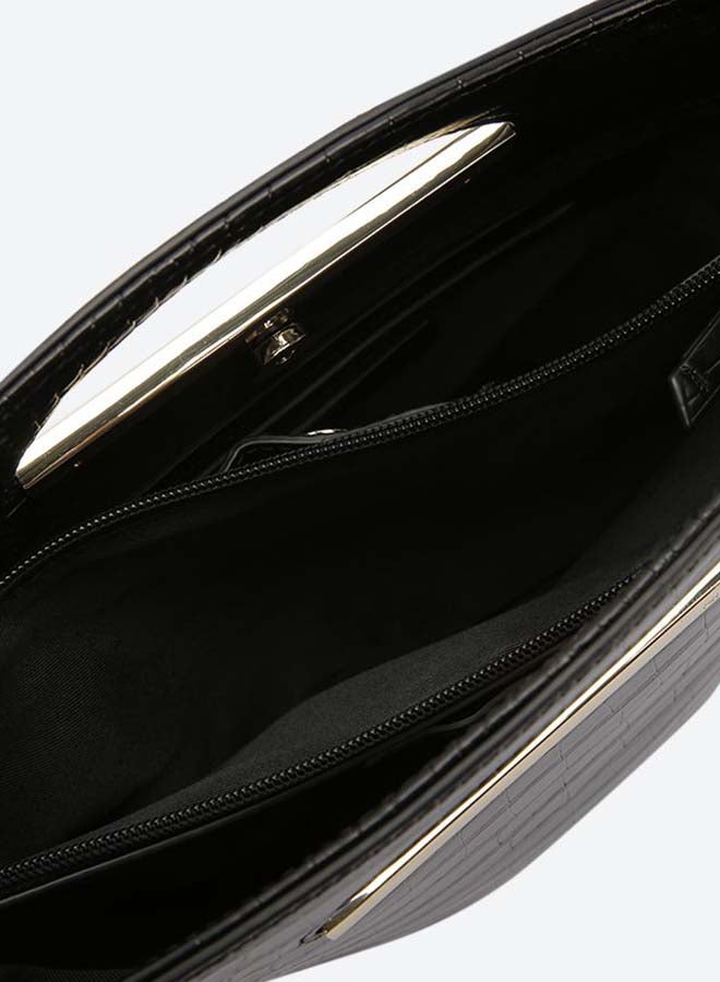 Cut It Out Detail Top Zip Closure Bucket Bag Black