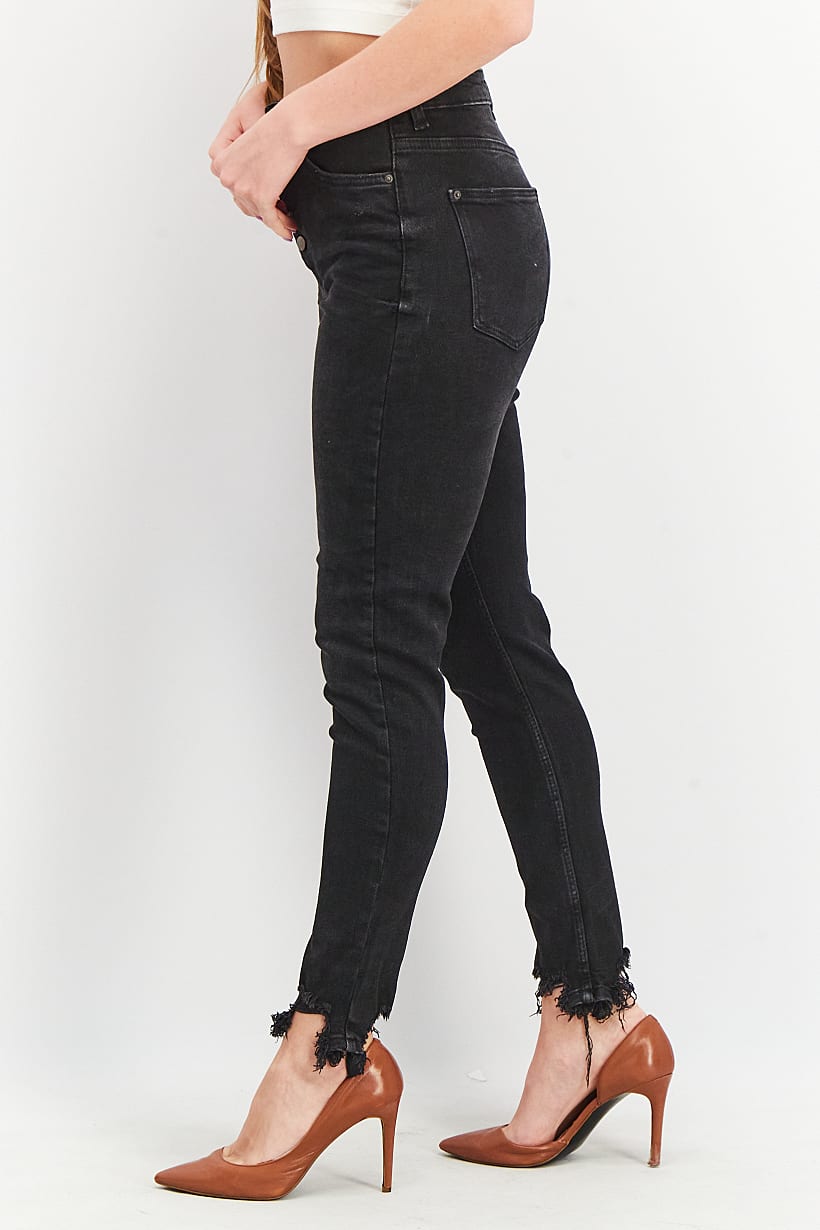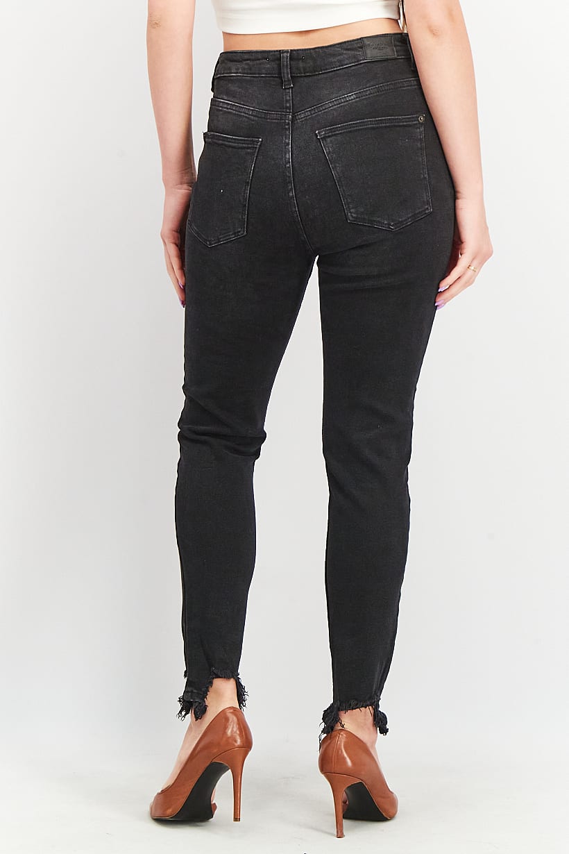 Black Button Fly Skinny Jeans for Women with Stretch Fit.