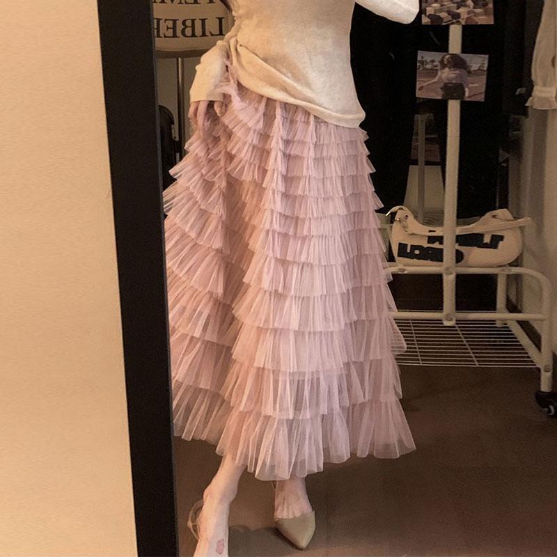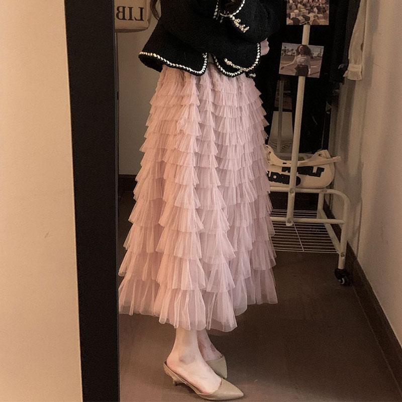 | nameOriginal | Black Cake Skirt Women's Little Skirt 2024 Spring and Summer New A- line Skirt Mid-length Mesh Skirt Tutu Skirt |