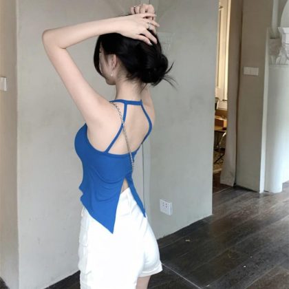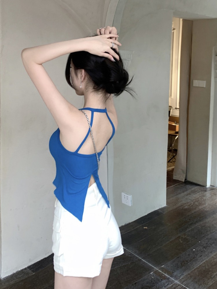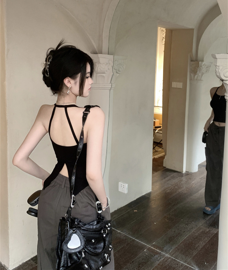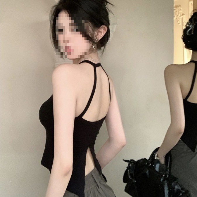 | nameOriginal | Black Camisole Women's Inner Vest with Chest Pad Split Beautiful Back Design Niche Outfit Short |