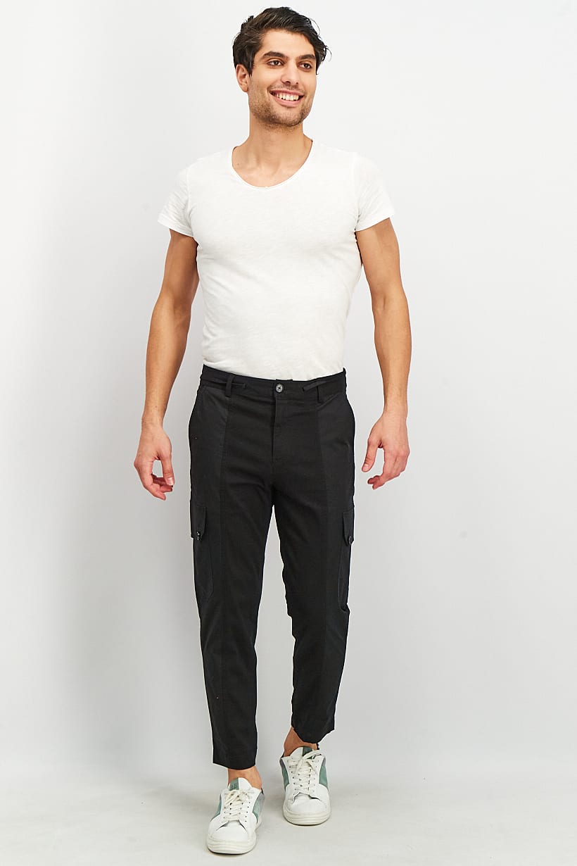 | sub_Categories | Men Clothing, Pants, men regular fit solid drawstring cargo pants black |
