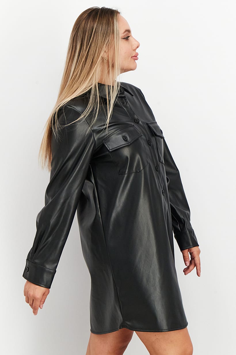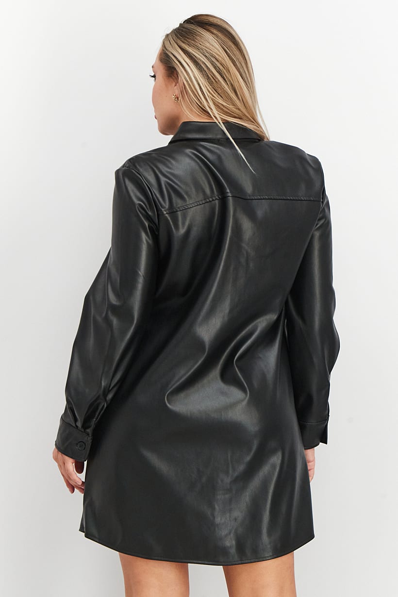 | nameOriginal | Women Faux Leather Button Down Casual Shirt Dress, Black |