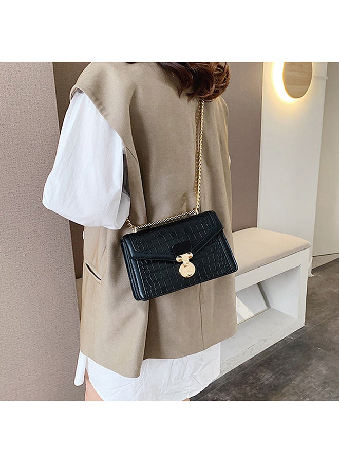 Introducing our stylish and versatile Crossbody Bag with Chain in classic black. This bag is the perfect accessory for any outfit, whether you’re dressing up for a night out or running errands during the day. The sleek black design is timeless and will never go out of style. The chain strap adds a touch of edginess and can be adjusted to your desired length. The bag is made with high-quality materials and features multiple compartments to keep your essentials organized. The compact size makes it easy to carry around while still providing enough space for your phone, wallet, keys, and other small items. Upgrade your accessory game with our Crossbody Bag with Chain in black.