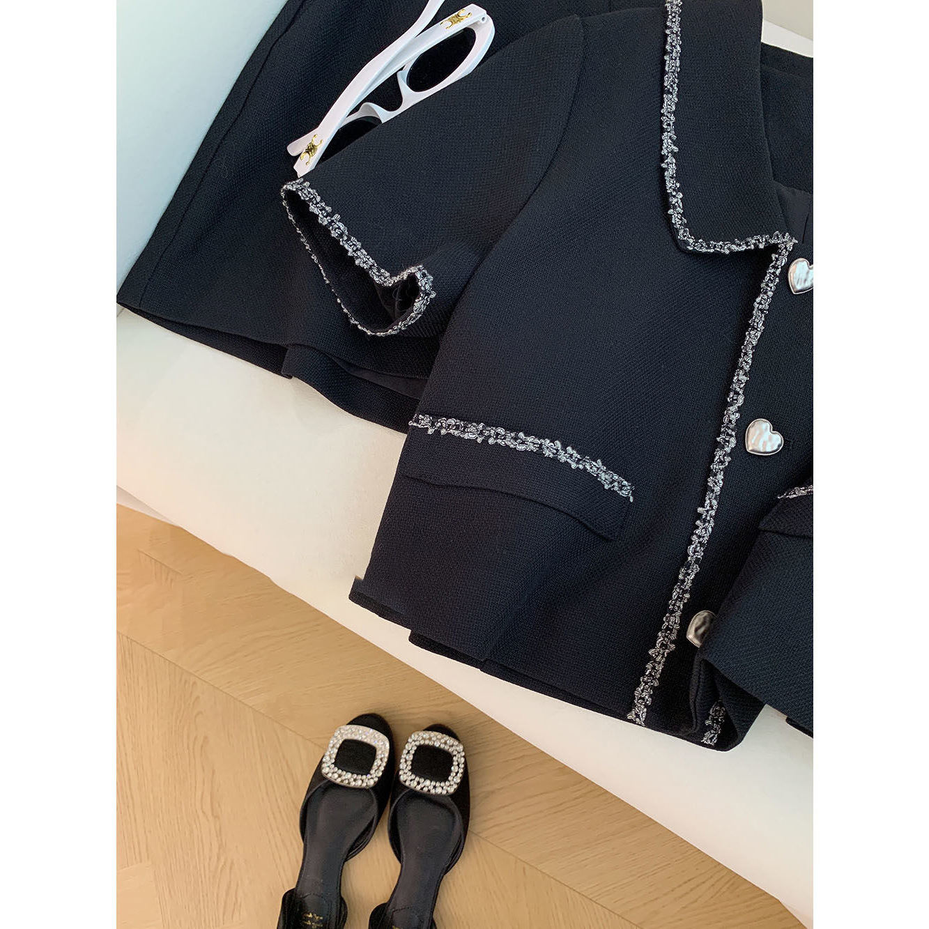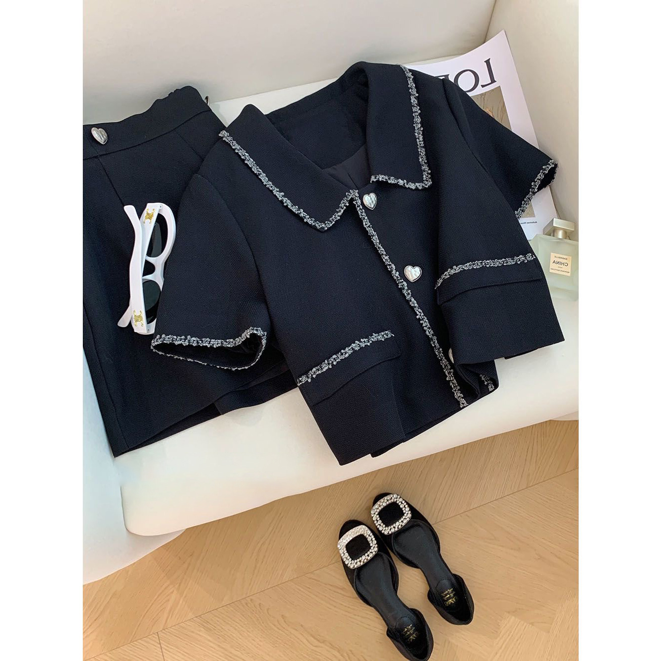 Black Chanel Style Short-sleeved Jacket Shorts suit Women’s Summer 2024 New High-end Elegant Socialite Two-piece Set