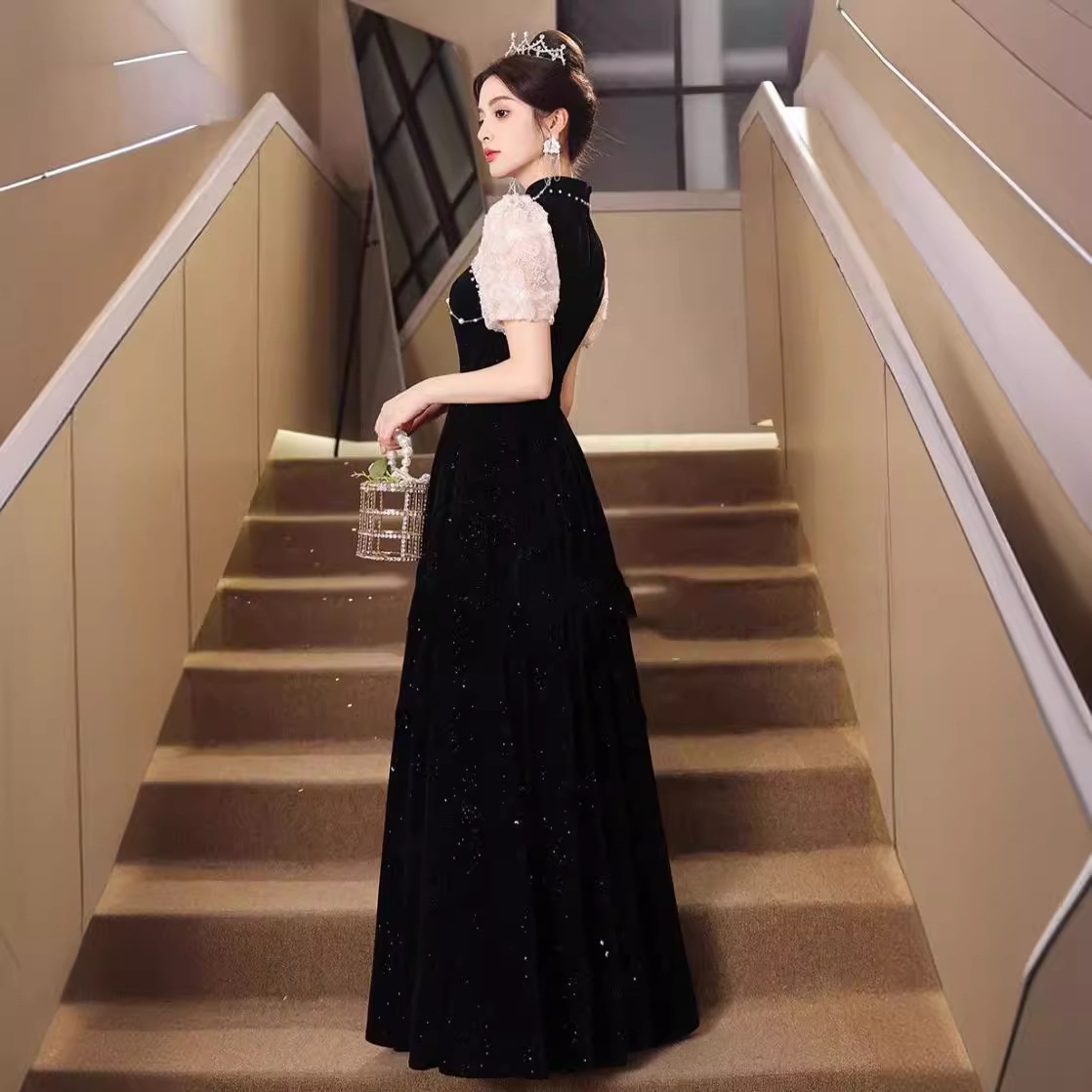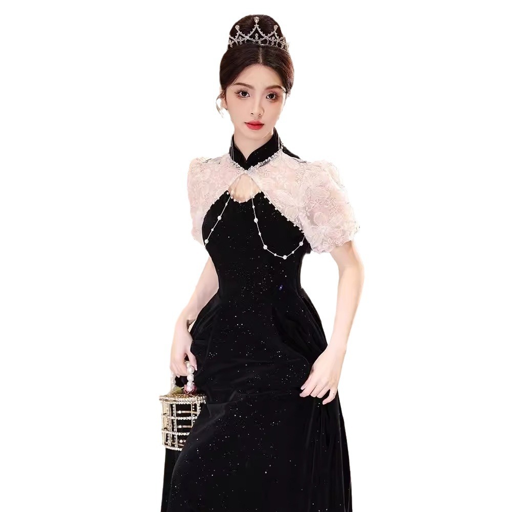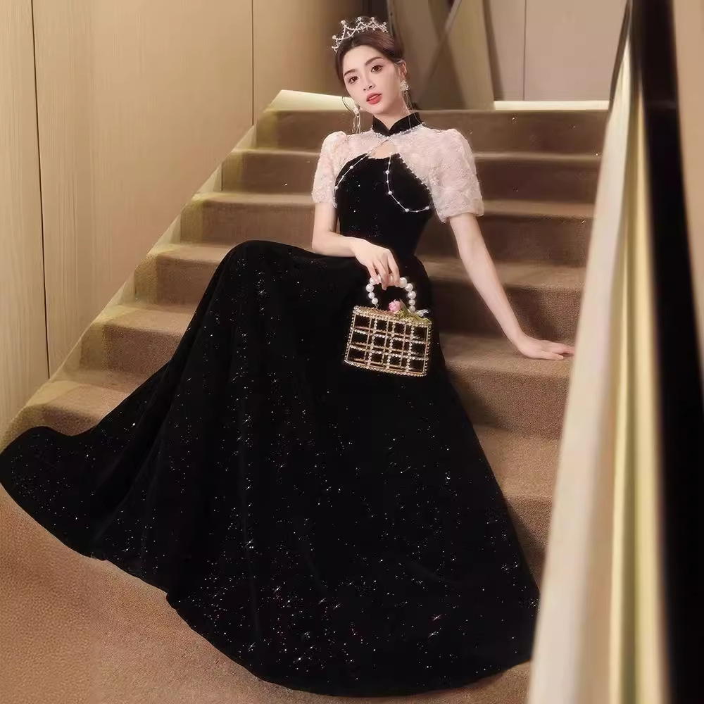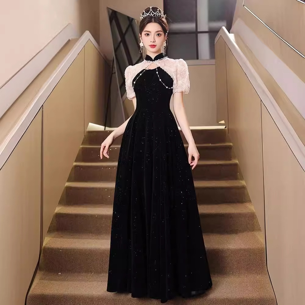 | nameOriginal | Black Cheongsam Evening Dress Women's 2024 New New Chinese Style Adult Ceremony Banquet Light Luxury Niche Host Dress |