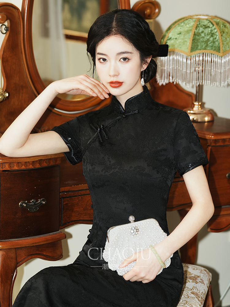 Black Cheongsam Women’s New Chinese Style Beautiful Improved New 2024 New Young Summer plus size Daily Wear Noble