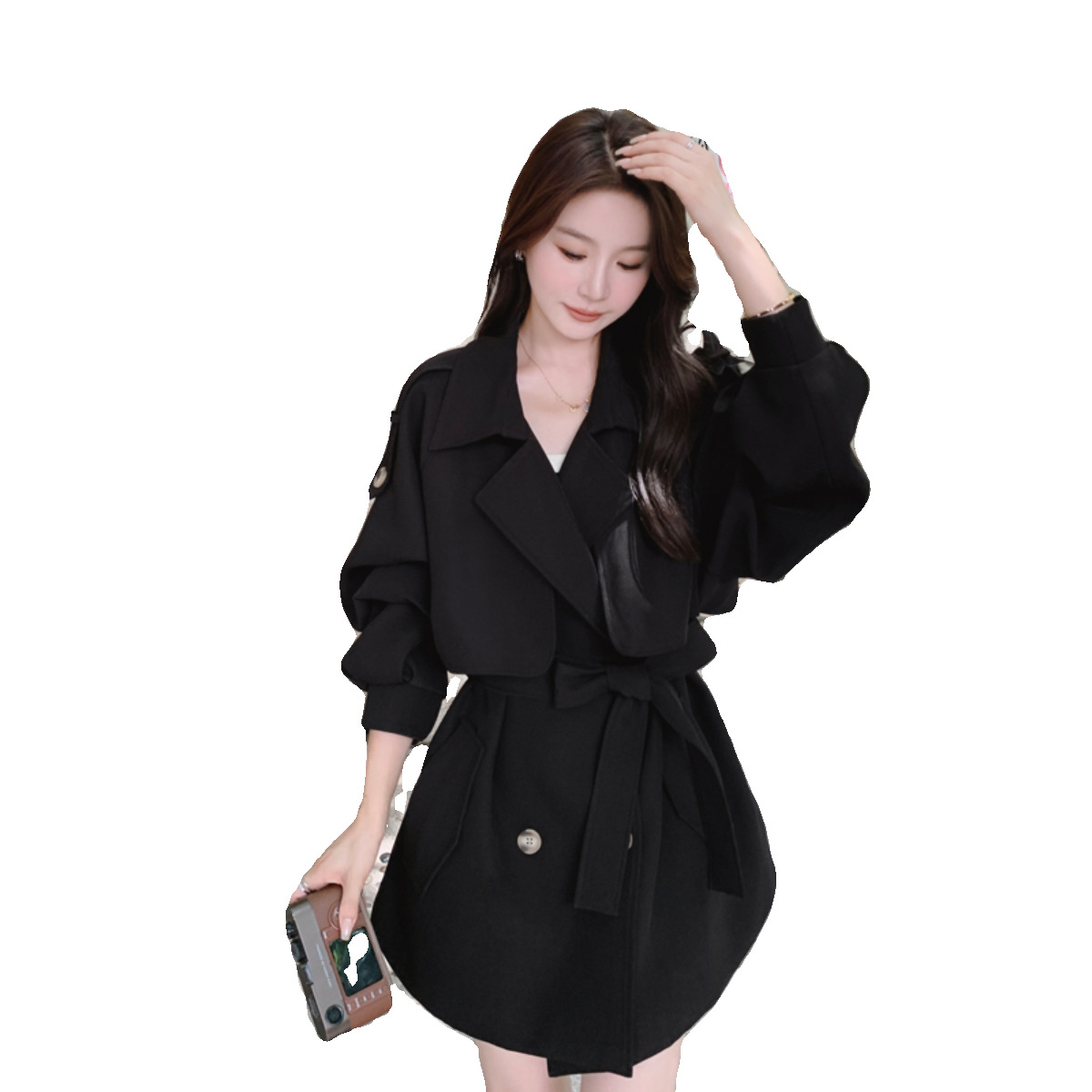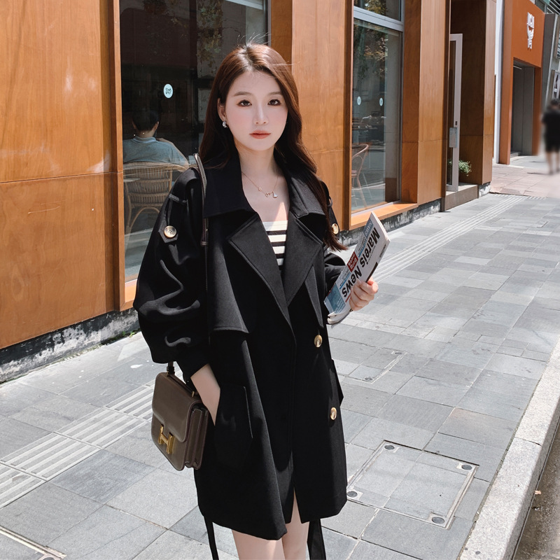 | nameOriginal | Black Coat Coat Women's 2024 Spring and Autumn New Korean-style British-style Small Loose Casual Double-breasted Coat |